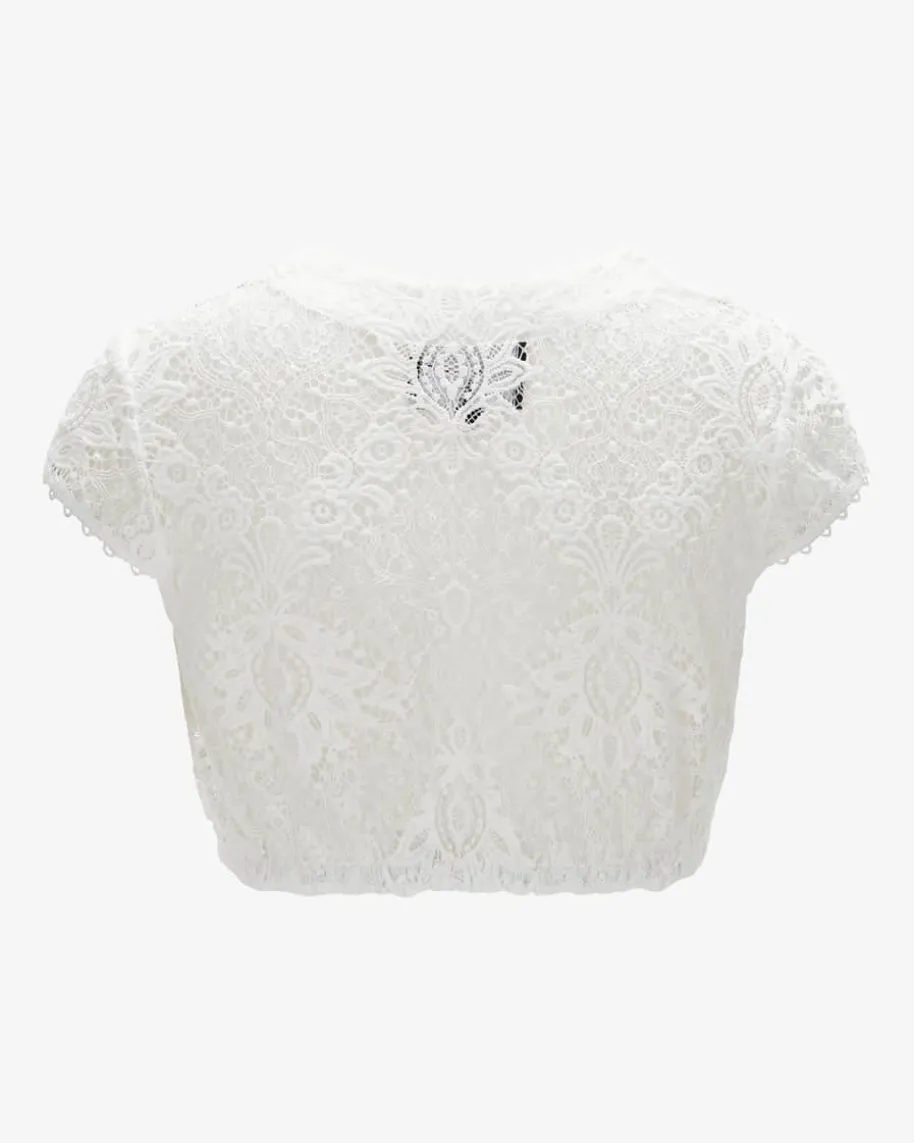Samantha Dirndlbluse für Damen von Kinga Mathe in Weiß. Dank der feinen Spitzesowie den Zierborten erhält das Modell einen traditionellen und zugleichromantischen Charakter.