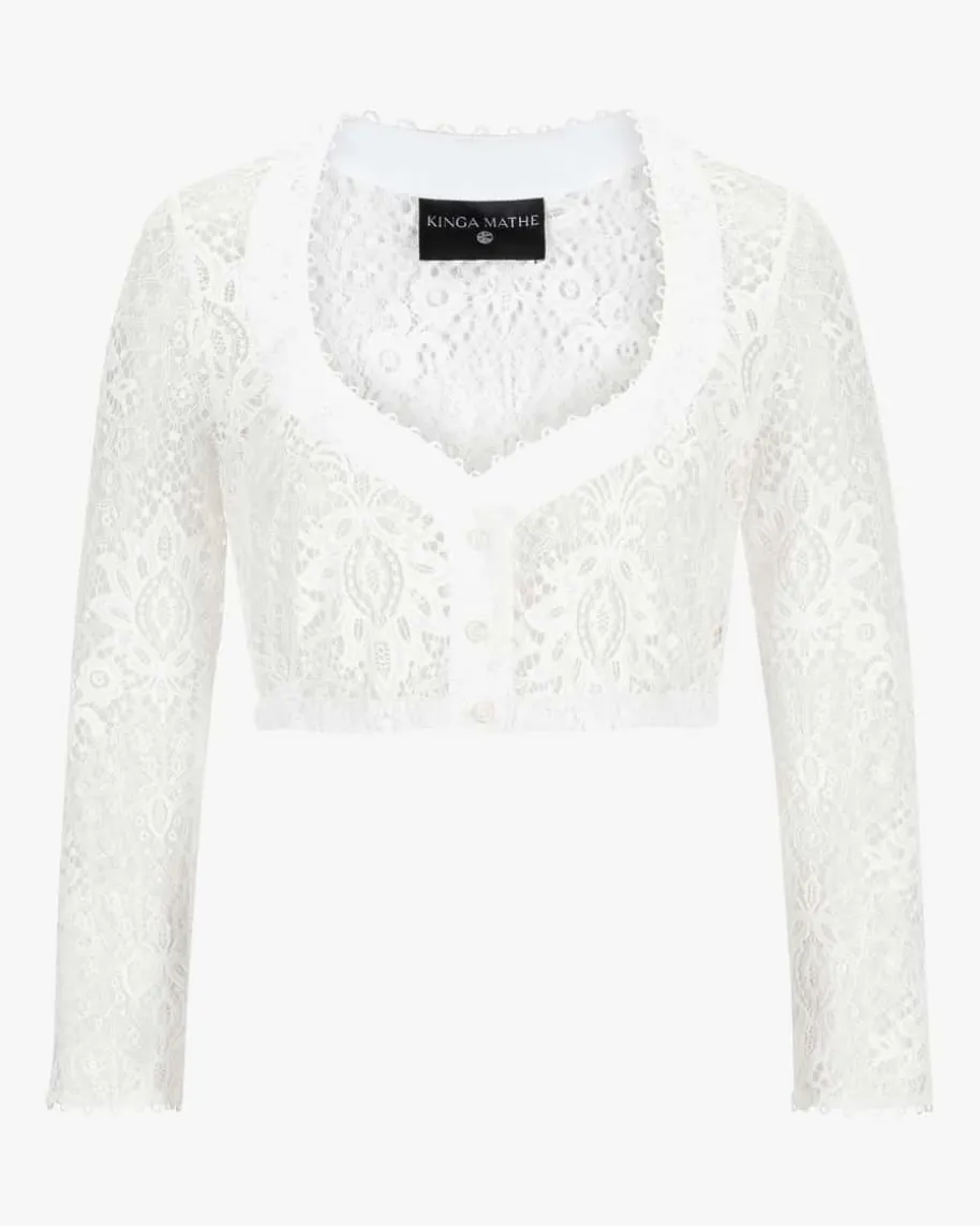 Samantha Dirndlbluse für Damen von Kinga Mathe in Weiß. Dank der feinen Spitzesowie den Paspelierungen erhält das Modell einen traditionellen und zugleichromantischen Charakter.