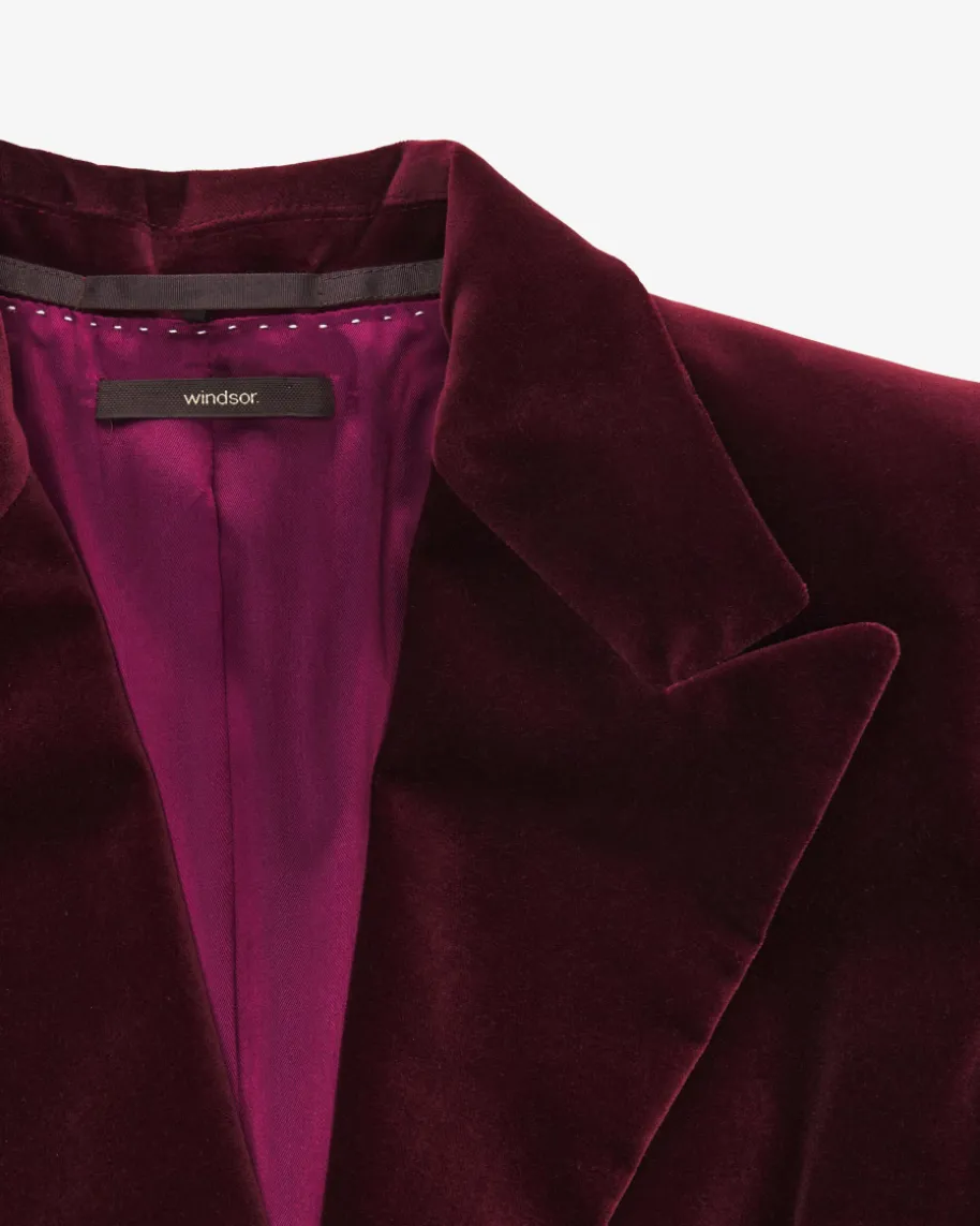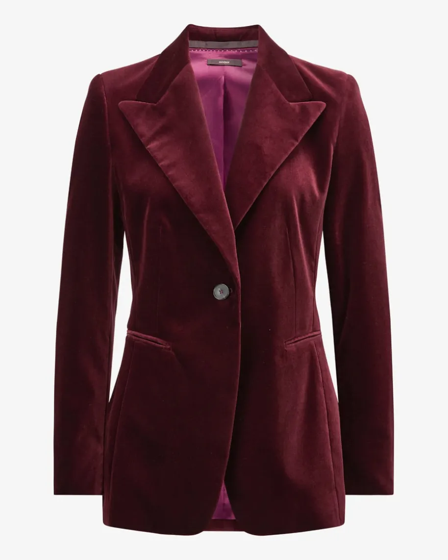 Samtblazer für Damen von Windsor in Bordeaux. Das Modell besticht dankklassisch-eleganten Details mit Spitzrevers als femininer Begleiter, während dieweiche Samt-Aufmachung das Piece zum optischen Highlight avancieren lässt.Zusammen mit der passenden Hose erhalten Sie einen stilvollen Zweiteiler-Look.