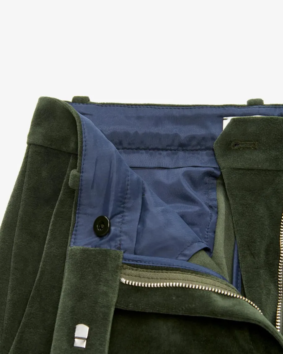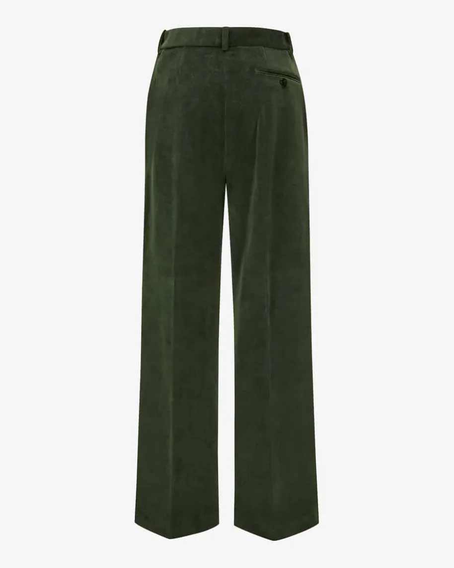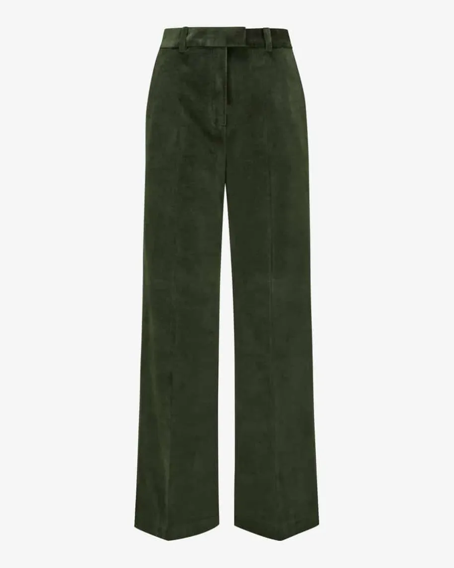 Samthose für Damen von Circolo 1901 in Tanne. Das Modell mit weitem Bein undhohem Bund präsentiert sich in weicher Samt-Qualität, welche sowohl haptisch alsauch optisch überzeugt und zusammen mit dem passenden Blazer im femininen Power-Look erstrahlt.
