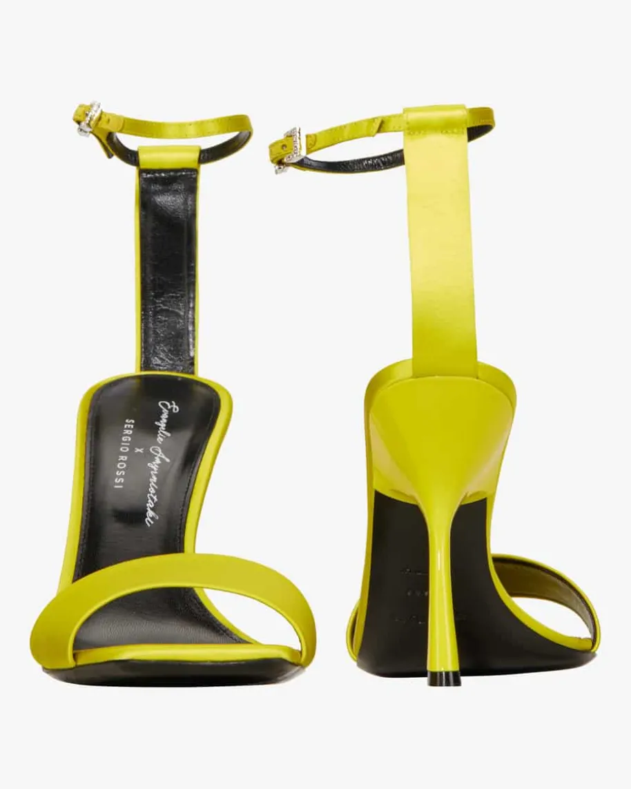 Sandaletten für Damen von Sergio Rossi in Gelb. Dank der Verwendung vonchangierendem Textil erhält das Modell einen klassischen und zugleichextravaganten Look. Der Glitzerstein-Besatz entlang der Dornschließe verleihtden letzten Schliff.
