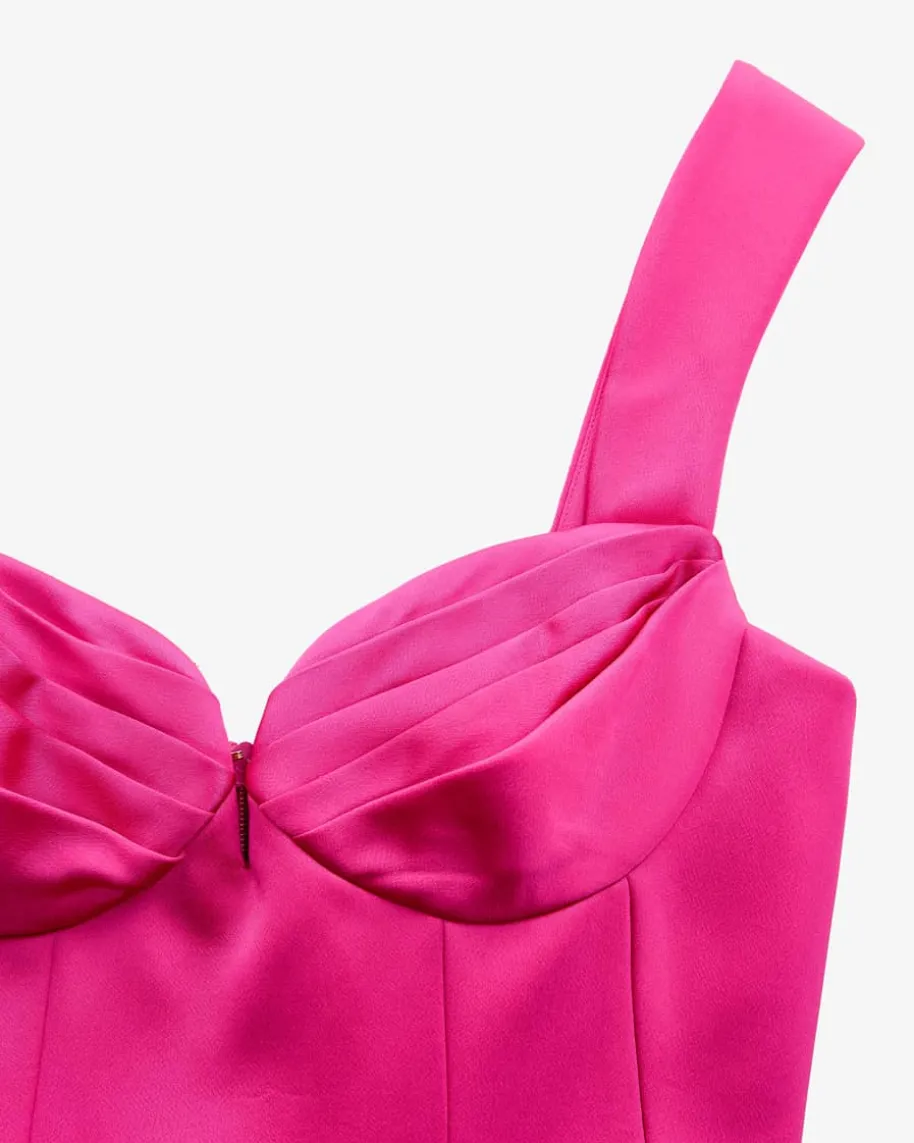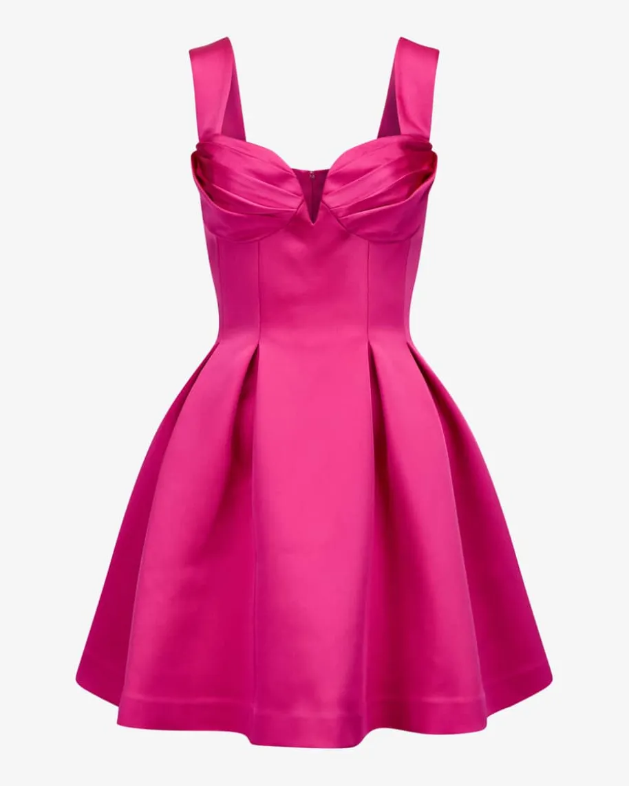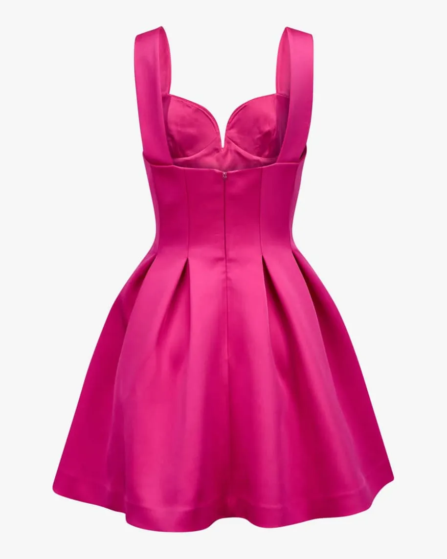 Saskia Cocktailkleid für Damen von Rebecca Vallance in Magenta. Ein femininerEyecatcher – Das Mini-Modell begeistert mit ausgestelltem Rock und robusterSatin-Aufmachung, während der besondere Herz-Ausschnitt mit separaten Cups unddrapierten Falten-Details einen extravaganten Touch verleiht.