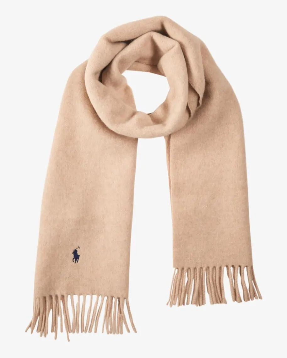 Schal für Herren von Polo Ralph Lauren in Beige. Dank der nachhaltigen Woll-Verarbeitung besticht das Modell mit einer einzigartigen Haptik, während dasschlichte Design einen vielseitigen Begleiter für kalte Tage schafft. Fransen-Details sowie die labeltypische Logo-Stickerei setzen zugleich modische Akzente.