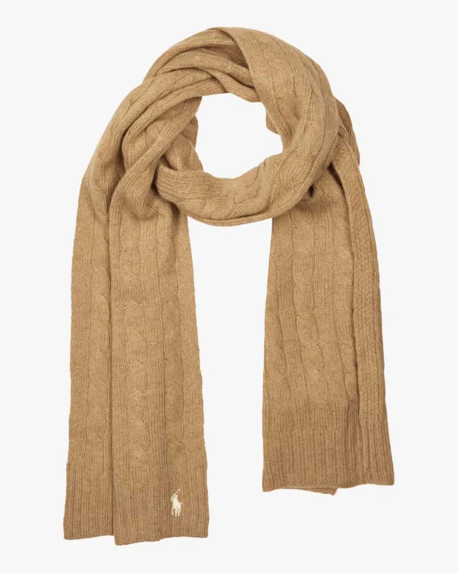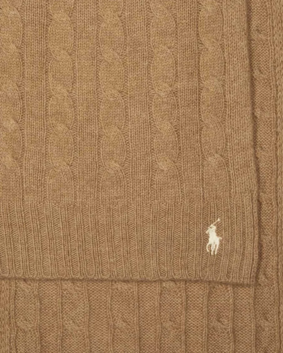 Strickschal für Damen von Polo Ralph Lauren in Camel. Das Modell präsentiertsich dank des hochwertigen Woll-Cashmere-Mix als weicher Favorit mit angenehm-leichtem Griff, während das Zopf-Design sowie Rippstrick-Details dem Gesamtbildeinen klassisch-modernen Charakter verleihen.