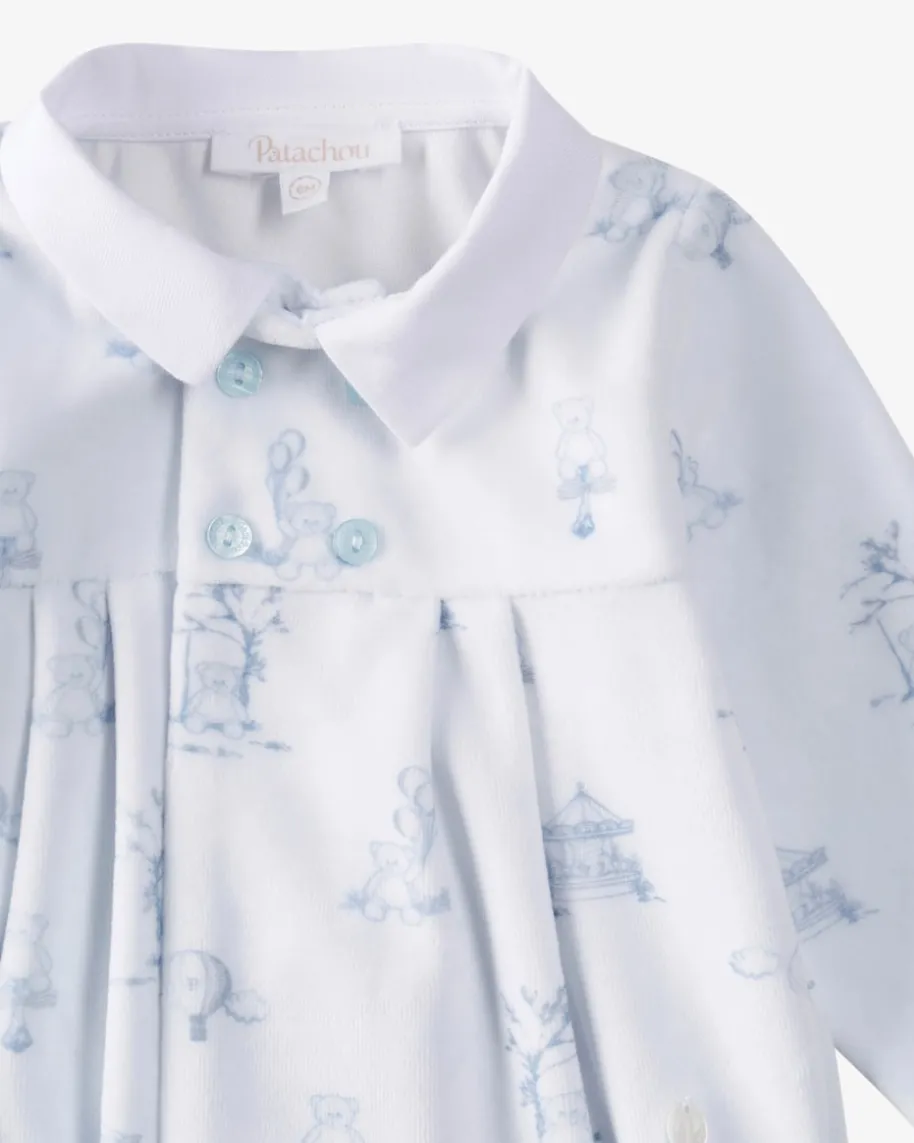 Schlaf-Overall für Babys von Patachou in Hellblau und Dunkelblau. Dank weichemNicki-Material sowie den süßen Bären-Prints besticht der Strampler alsniedlicher Favorit, während geknöpfte Partien einen unkompliziertenKleidungswechsel garantieren.