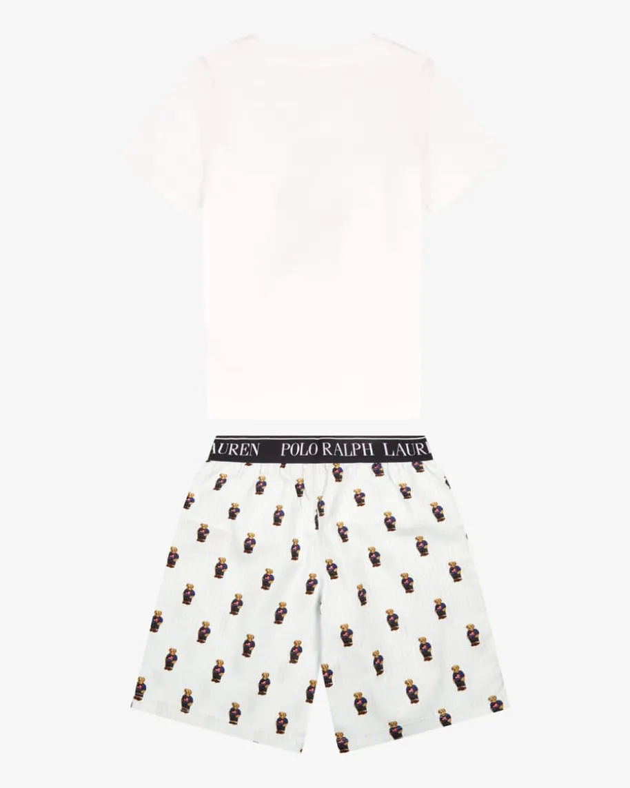 Schlafanzug für Jungen von Polo Ralph Lauren in Weiß und Hellblau. Das Modellbesticht dank der weichen Baumwoll-Qualität mit angenehmen Tragemomenten,während labeltypische Elemente ein modisches Gesamtbild kreieren.