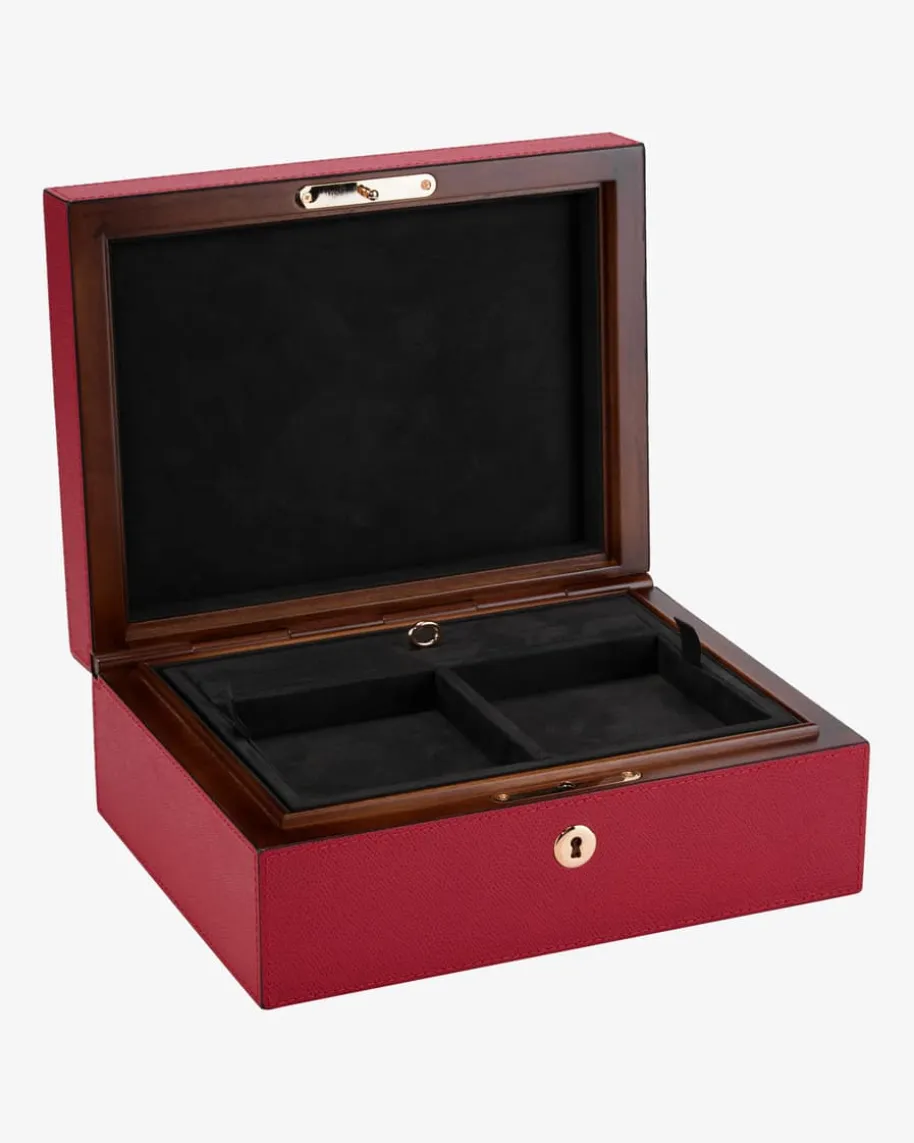 Schmuckkästchen von Giobagnara in Rot. Handmade in Italy – Feinste Leder-Verarbeitungen zeichnen die italienische Luxusmarke aus. Aus hochwertigem Lederund Walnussholz gefertigt, präsentiert sich das Modell als perfekte Aufbewahrungfür Ihren Schmuck.
