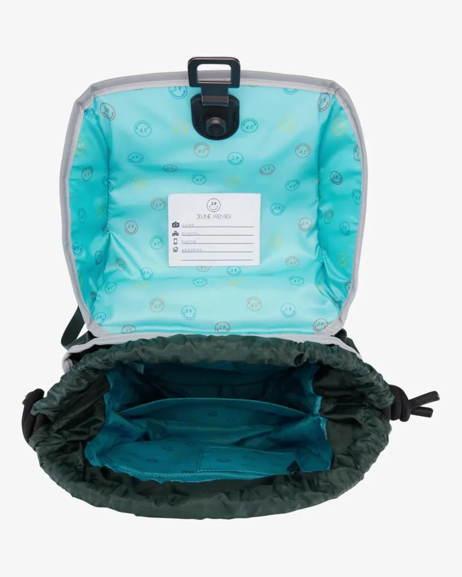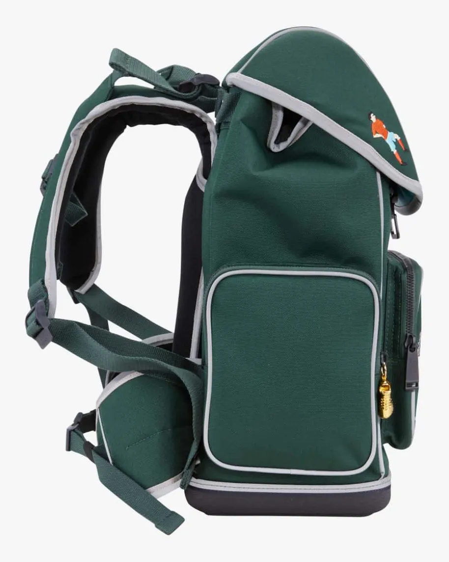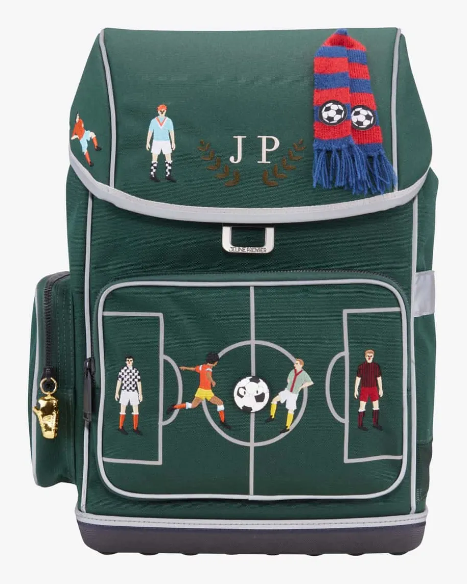 Kinder-Schulrucksack von Jeune Premier in Dunkelgrün und Blaugrau. Dasergonomische Modell garantiert Bewegungsfreiheit und gleichmäßigeGewichtsverteilung für Ihr Kind, während der stabilisierende und individuellanpassbarer Hüftgurt, Rückengurt sowie Brustgurt optimalen Tragekomfortgewährleistet. Das Tragesystem verlagert zudem 50% des Gewichts auf die Hüfte.Das coole Fußball-Design rundet das praktische Design kreativ-verspielt ab.Investieren Sie in Ihr Kind. Ihnen gehört die Zukunft!