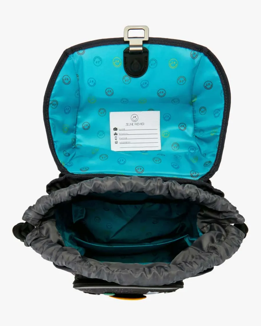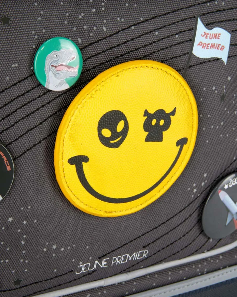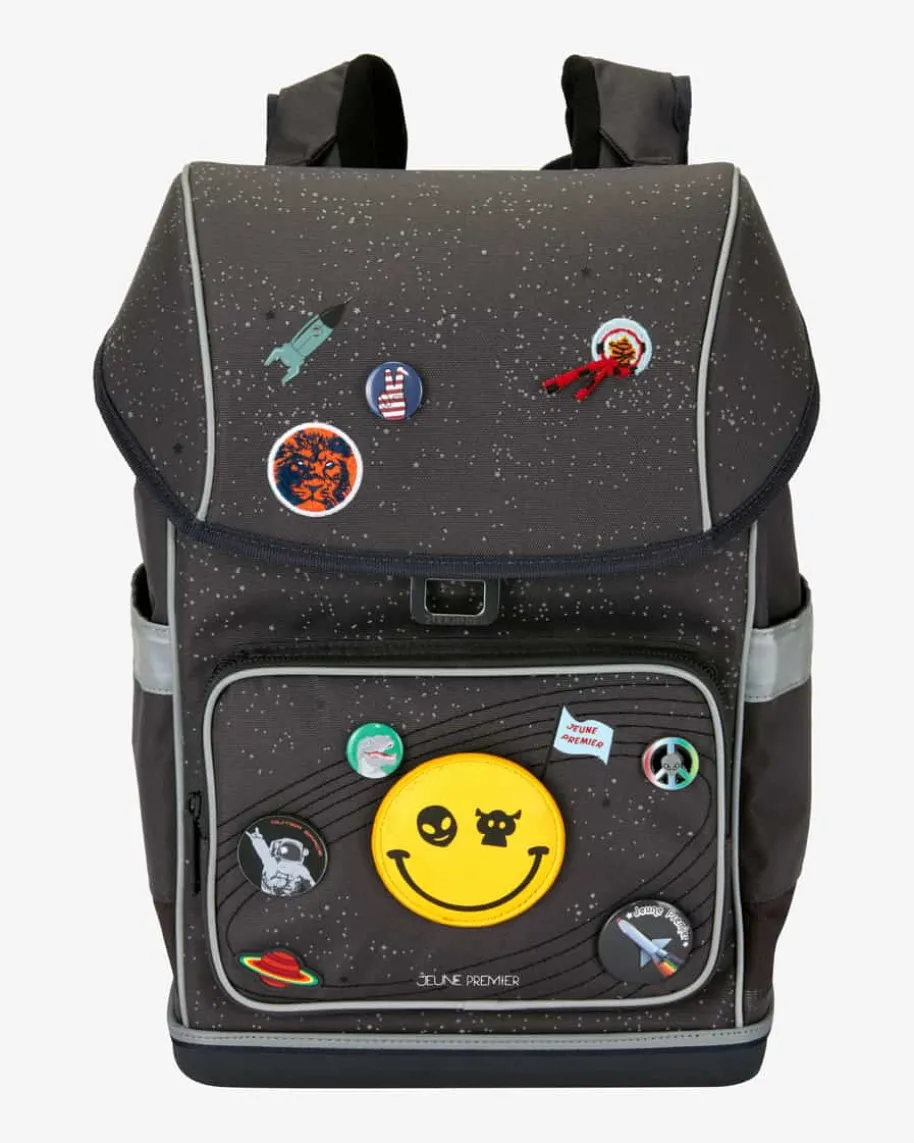 Schulrucksack für Kinder von Jeune Premier in Dunkelgrau und Bunt. Dasergonomische Modell garantiert Bewegungsfreiheit und gleichmäßigeGewichtsverteilung für Ihr Kind, während der stabilisierende und individuellanpassbarer Hüftgurt, Rückengurt sowie Brustgurt optimalen Tragekomfortgewährleistet. Das Tragesystem verlagert zudem 50% des Gewichts auf die Hüfte.Das kreative Weltall-Design sowie die abnehmbare Smiley-Applikation runden daspraktische Design verspielt ab. Investieren Sie in Ihre Kinder – Ihnen gehörtdie Zukunft!