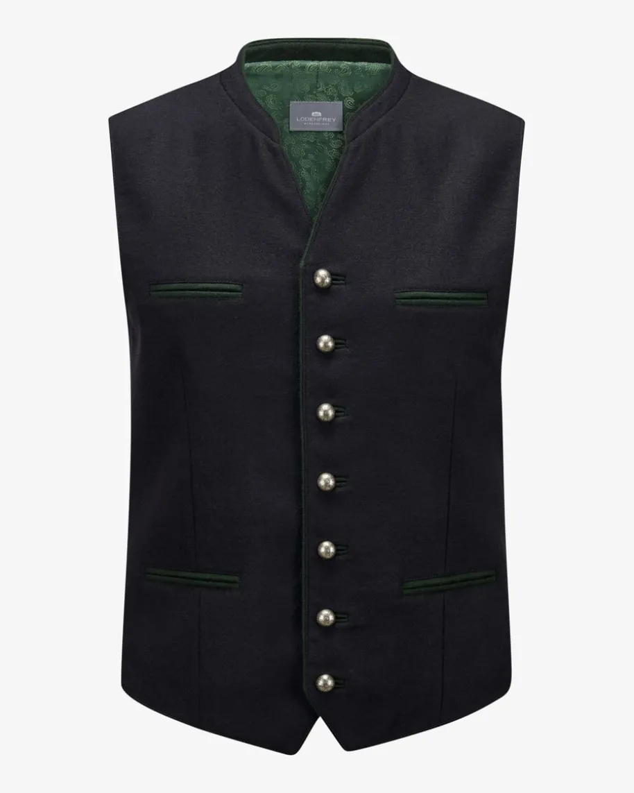 Schwabing Trachtenweste für Herren von LODENFREY in Schwarz.Die Herren-WesteModell Schwabing ist aus hochwertiger Schurwolle gefertigtund versprichtangenehme Tragemomente. Ornamentale Kugelknöpfe undkontrastierendePaspeltaschen runden die traditionelle Weste gekonnt ab.Ideal zur Lederhose undHaferlschuhen.