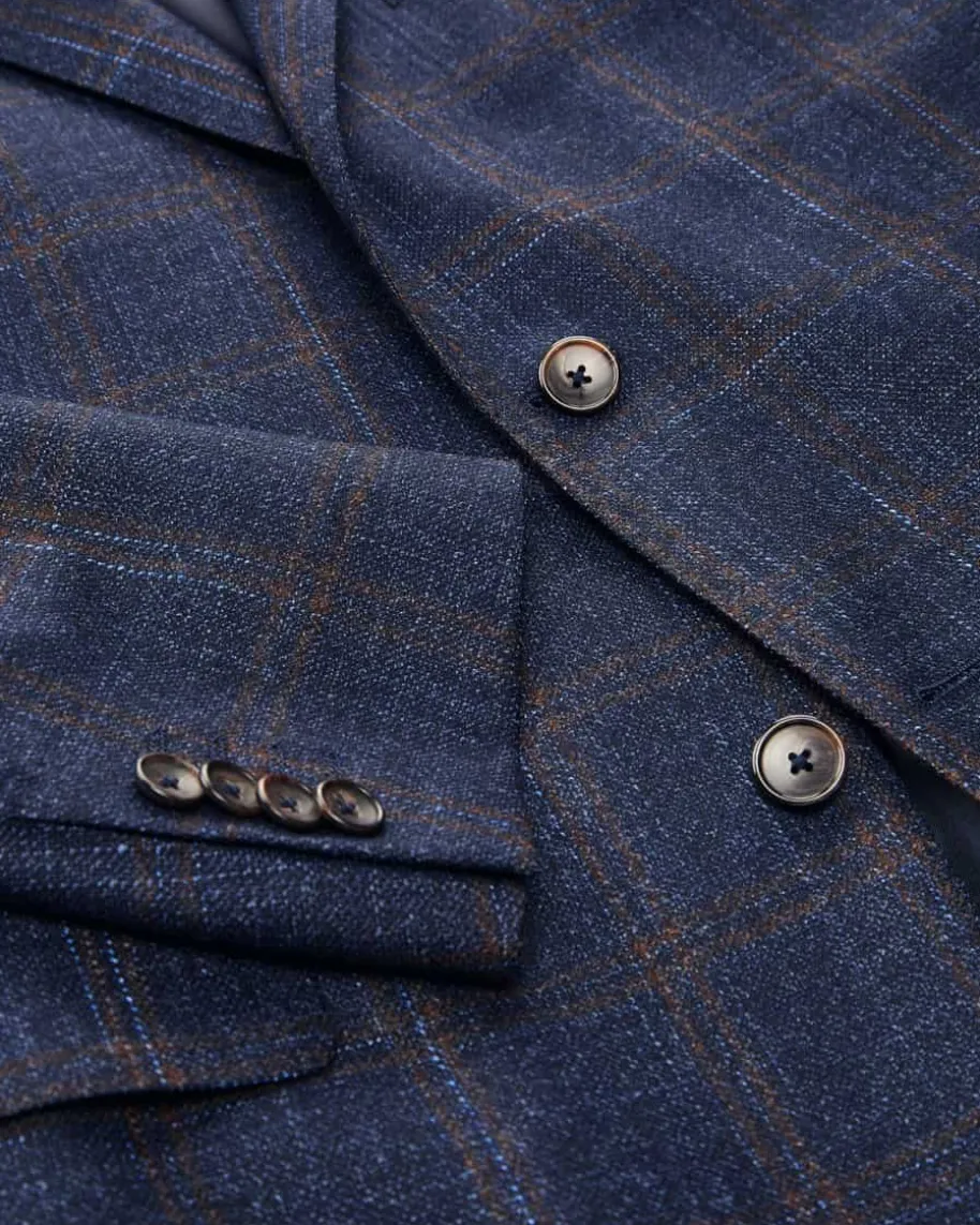 Sean Sakko Regular Fit für Herren von Eduard Dressler in Dunkelblau undDunkelbraun. Das Modell präsentiert sich mit dezentem Karo-Muster und weichemWoll-Seide-Cashmere-Mix, der für angenehmen Tragekomfort sorgt. Die maskulinePassform wird zudem durch Taillenabnäher sowie klassische Details gekonntunterstrichen und schafft einen eleganten Look.