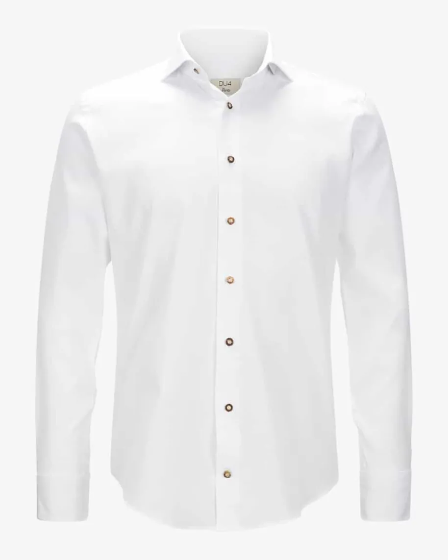 Sebi Trachtenhemd für Herren von DU4 in Blau und Weiß. Seit 45 Jahren entwirftdas Label leidenschaftlich stilvolle Hemden – Das schmal geschnittene Modell ausangenehmer Baumwoll-Qualität besticht mit traditioneller Optik.