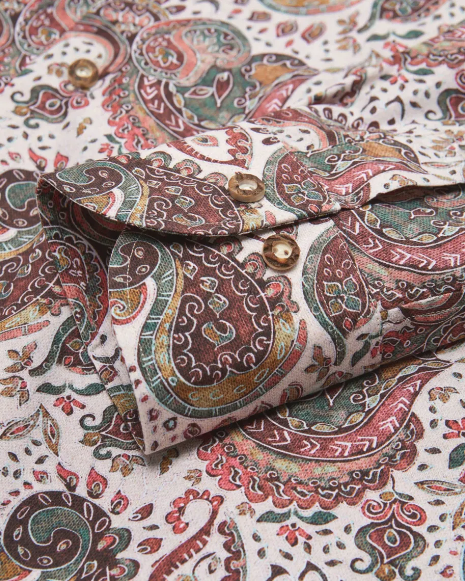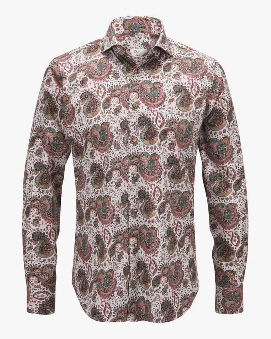 Sebi Trachtenhemd für Herren von Du4 in Bunt und Creme. Ob zum Oktoberfest, demBesuch im Biergarten, einer Hochzeit oder einfach im Alltag – Bei Du4 trifftMode auf Tracht. Während das farbenfrohe Paisley-Muster dem Baumwoll-Modelleinen modernen Charakter verleiht, setzen die Hornknöpfe traditionelle Akzente.