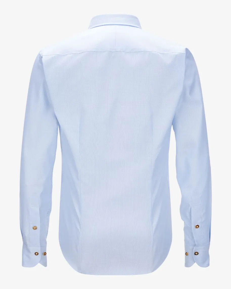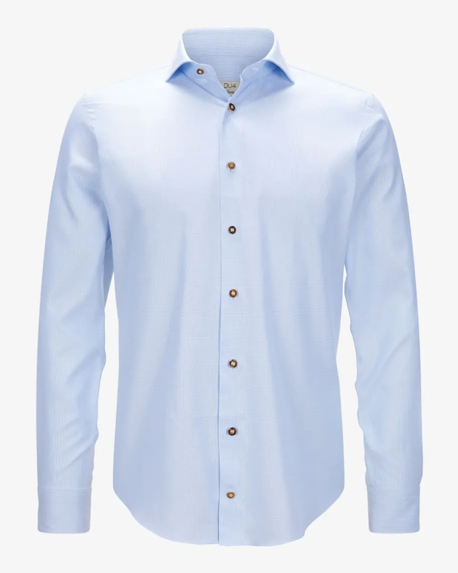 Sebi Trachtenhemd für Herren von DU4 in Hellblau und Weiß. Seit 45 Jahrenentwirft das Label leidenschaftlich stilvolle Hemden – Das schmal geschnitteneModell aus angenehmer Baumwoll-Qualität besticht mit traditioneller Optik.