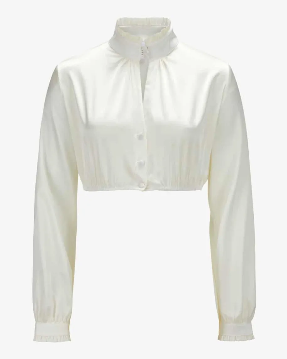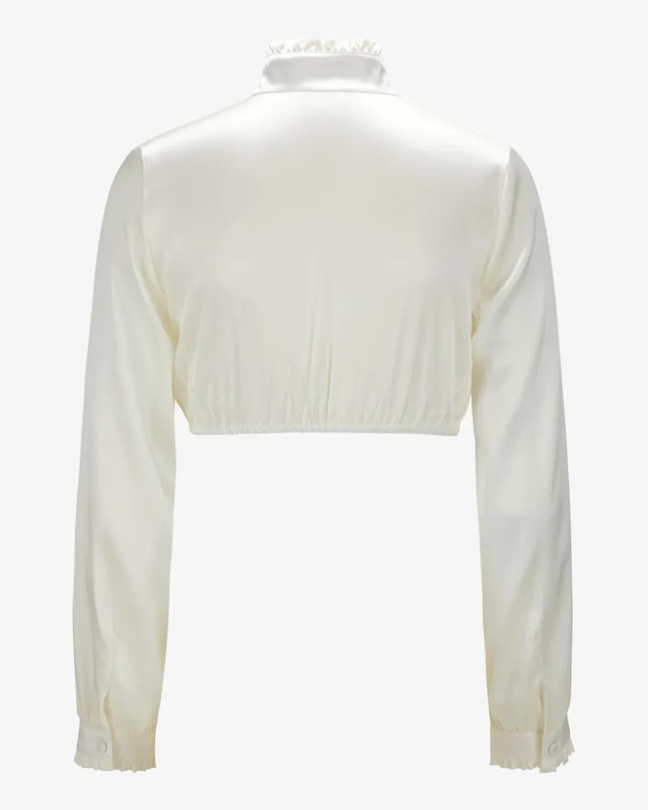 Seiden-Dirndlbluse für Damen von LODENFREY München 1842 in Champagner. DasModell präsentiert sich dank der elastischen Seiden-Qualität in edelchangierender Optik und angenehmen Haptik, während die Rüschen-Details denTrachten-Begleiter stilvoll vollenden.