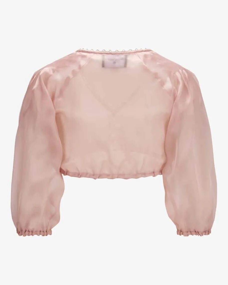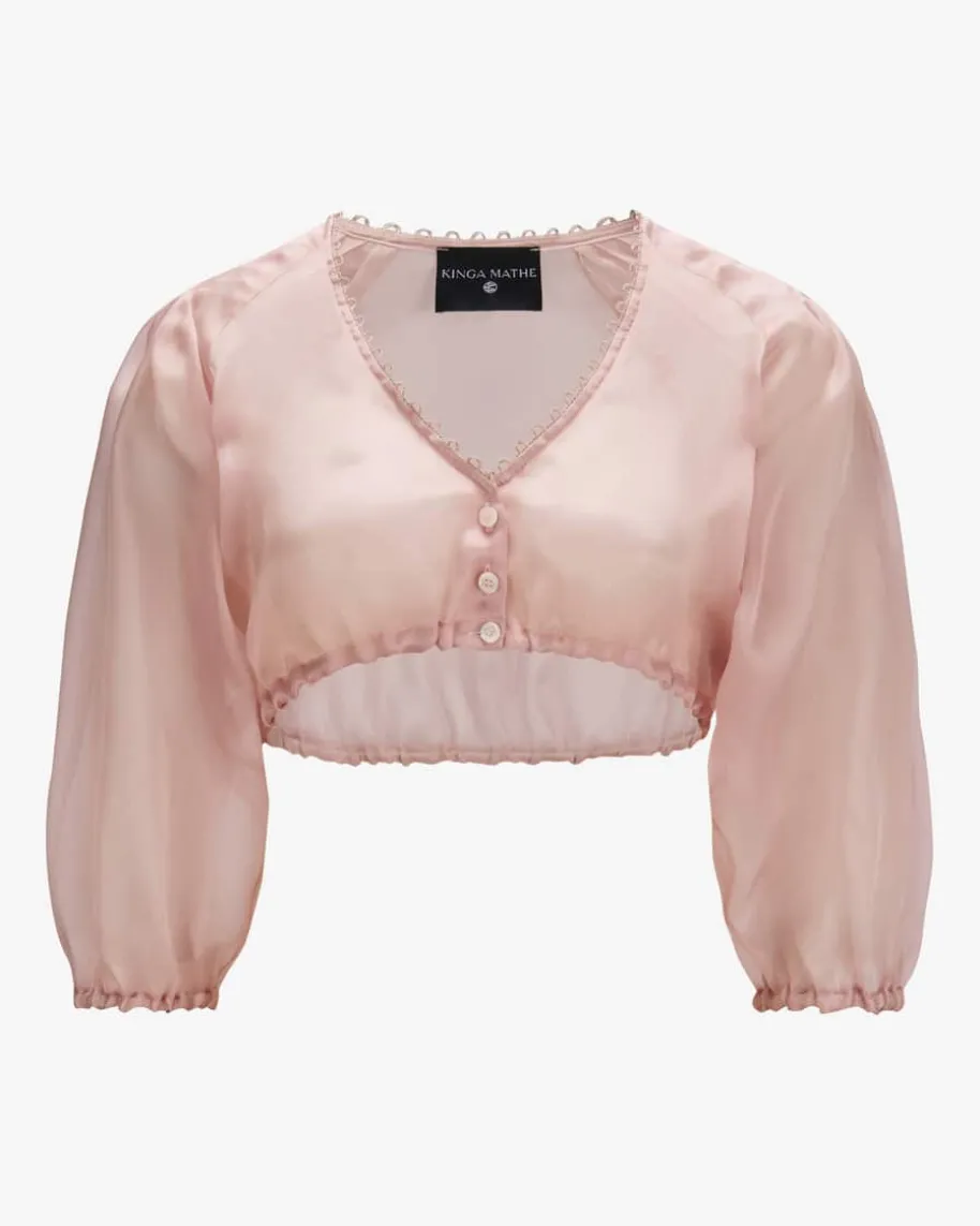 Seiden-Dirndlbluse für Damen von Kinga Mathe in Altrosa. Das semitransparenteModell avanciert dank der abgenähten Falten-Details an der Schulter zummodischen Blickfang, während die Ballonärmel den femininen Look gekonnt in Szenesetzen.