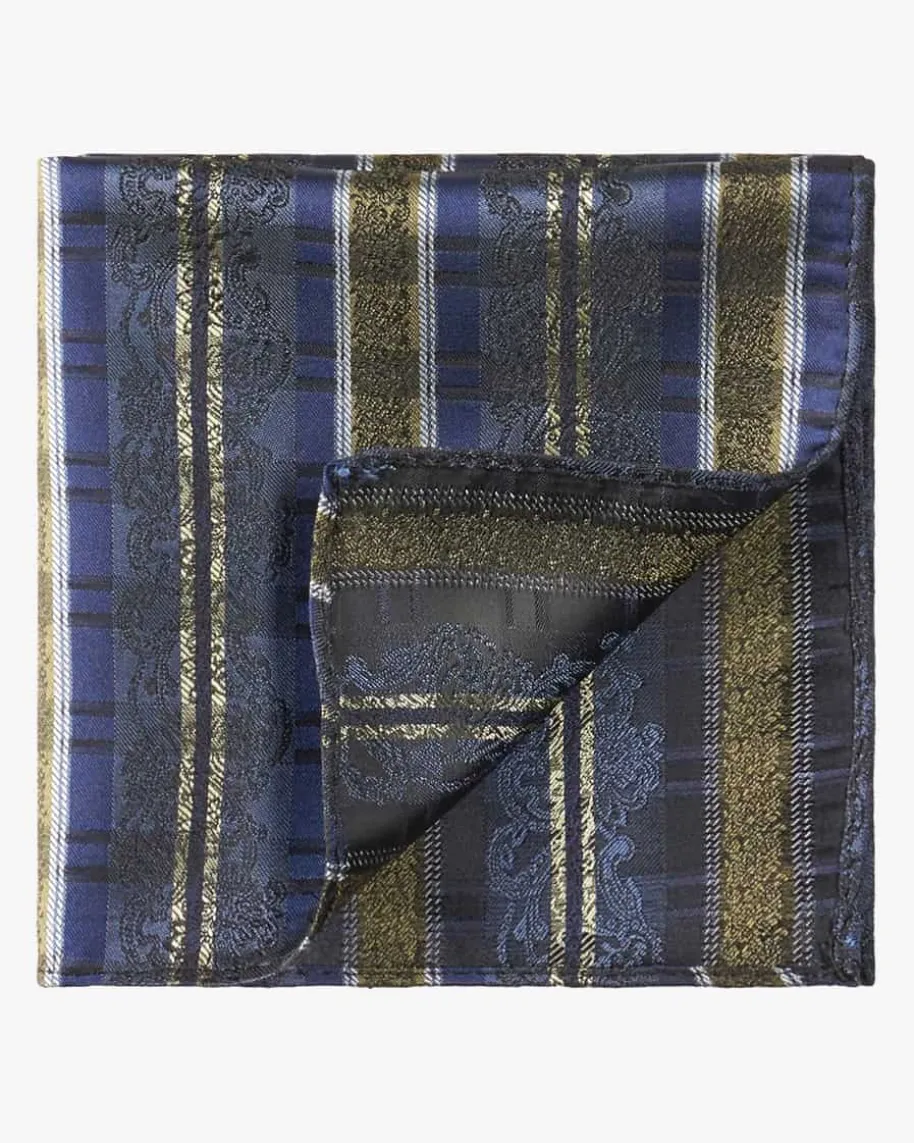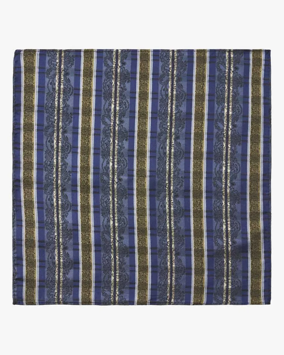 Seiden-Einstecktuch für Herren von Luise Steiner in Dunkelblau, Moosgrün undWeiß. Das Modell wird durch die stilvollen Zierstickereien gekonnt in Szenegesetzt und mit der hochwertigen, changierenden Seiden-Qualität edel untermalt.