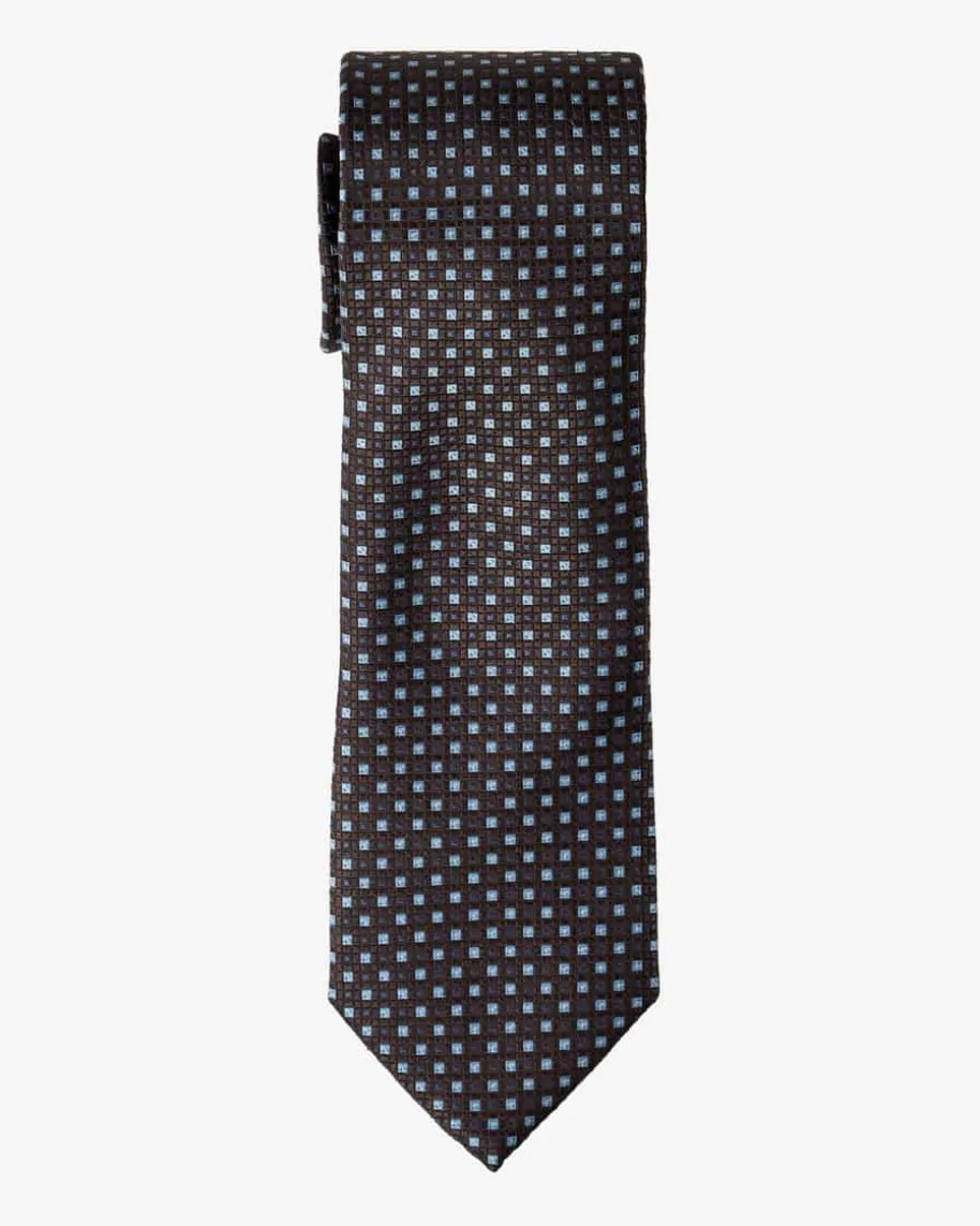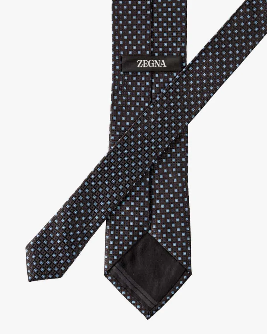 Seiden-Krawatte für Herren von Zegna in Dunkelbraun, Hellblau und Navy. Dank derhochwertigen Seiden-Verarbeitung erhält das Modell eine edel changierende Optik.Das geometrische Allover-Muster schafft zudem ein optisches Highlight fürelegante Looks.