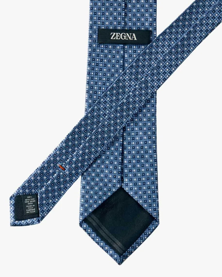 Seiden-Krawatte für Herren von Zegna in Hellblau, Navy und Weiß. Dank derhochwertigen Seiden-Verarbeitung erhält das Modell eine edel changierende Optik.Das geometrische Allover-Muster schafft zudem ein optisches Highlight fürelegante Looks.