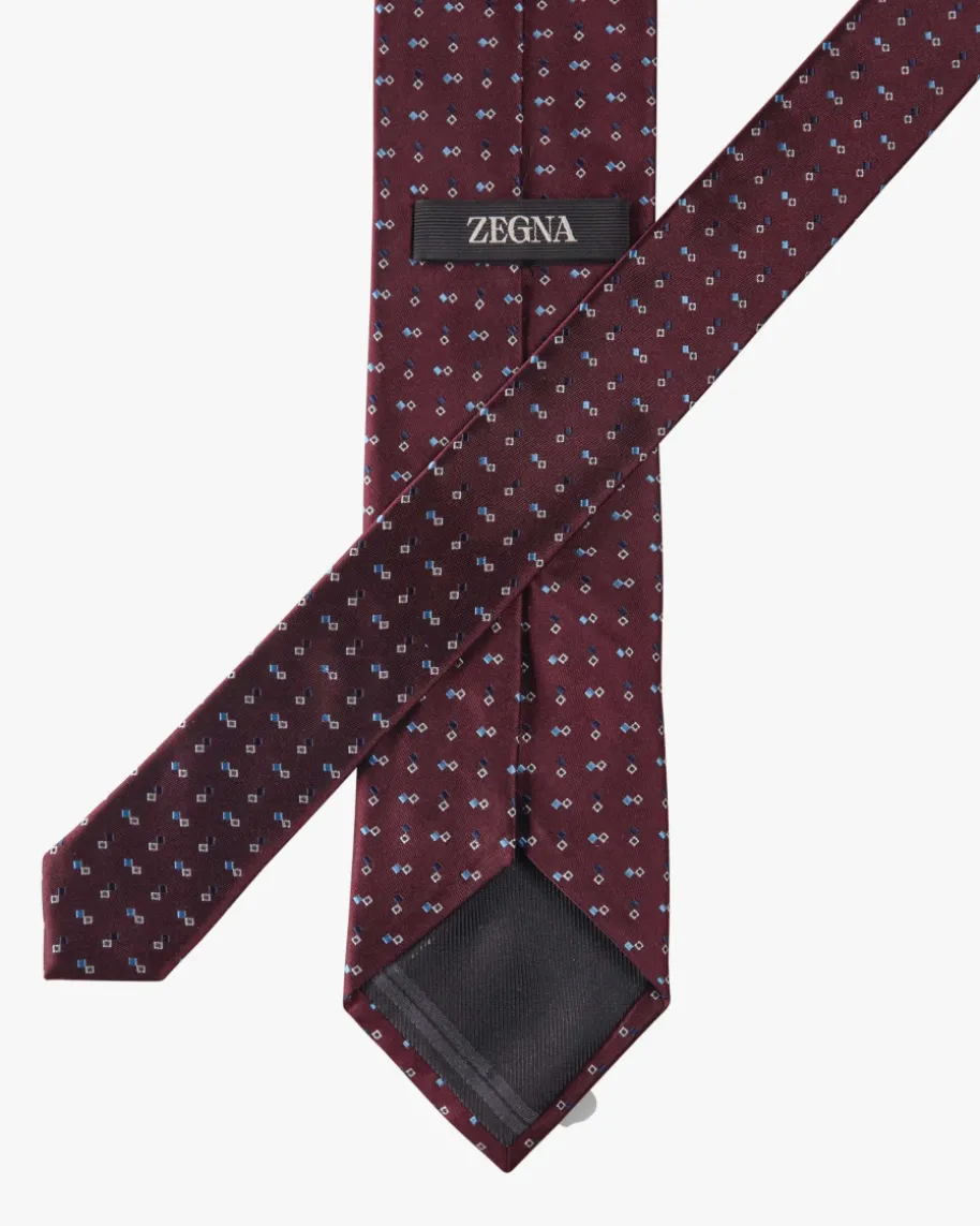 Seiden-Krawatte für Herren von Zegna in Bordeaux, Hellblau und Navy. Dank derhochwertigen Seiden-Verarbeitung erhält das Modell eine edel changierende Optik.Das geometrische Allover-Muster schafft zudem ein optisches Highlight fürelegante Looks.