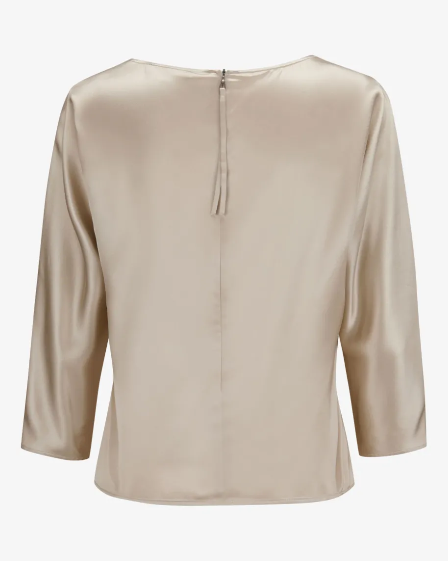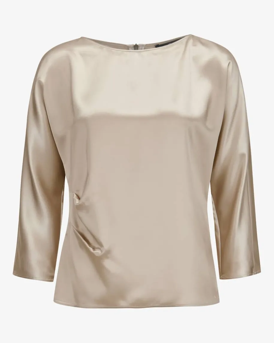 Seidenbluse für Damen von Luisa Cerano in Stein. Das deutsche Modelabel LuisaCerano begeistert mit luxuriöser, femininer Damenmode, die durch hochwertigeMaterialien, lässige Schnitte, vielfältige Farben und subtile Eleganz überzeugt.Auch dieses Modell begeistert mit fließender Seiden-Qualität, die für angenehmenTragekomfort sorgt. Die modische Silhouette mit raffinierten Falten-Details ander Taille und überschnittene Schultern rundet den changierenden Look harmonischab.
