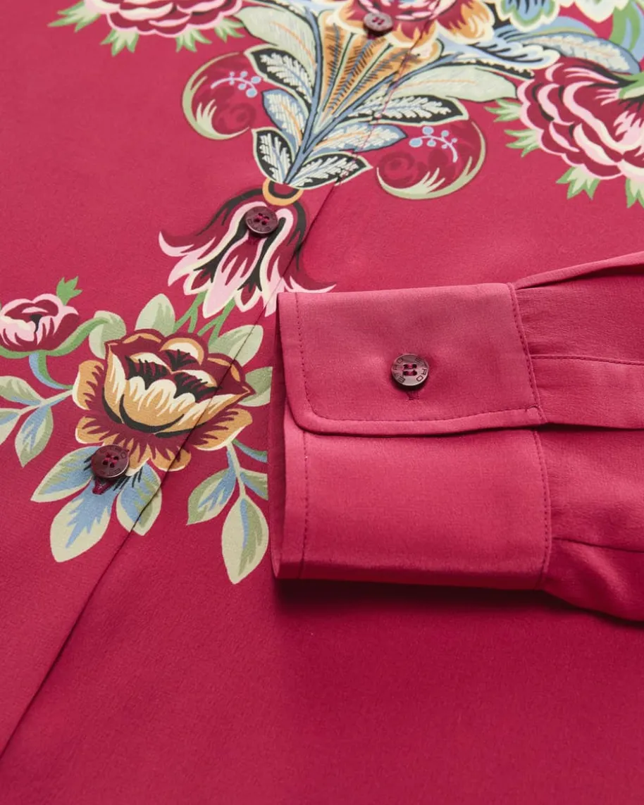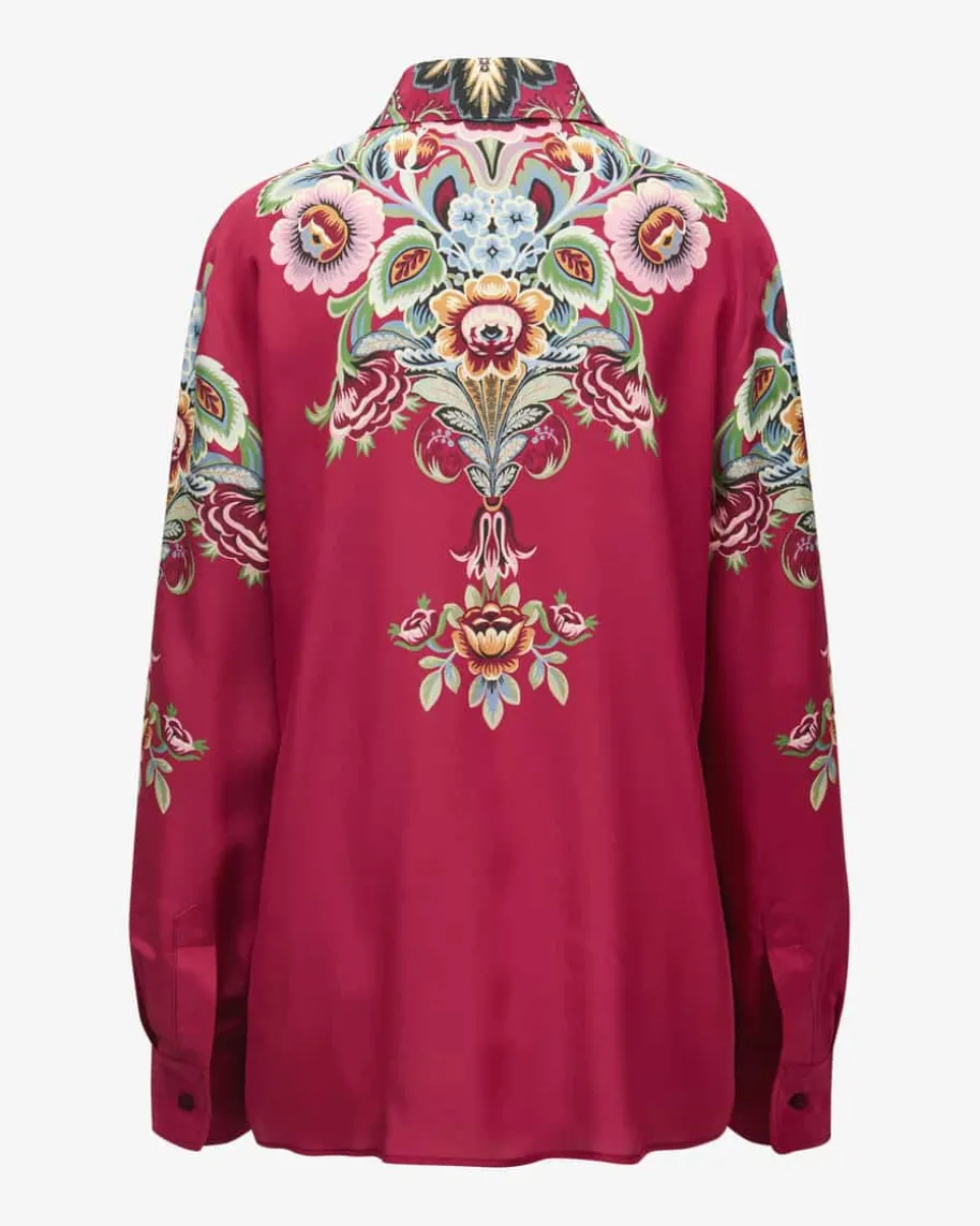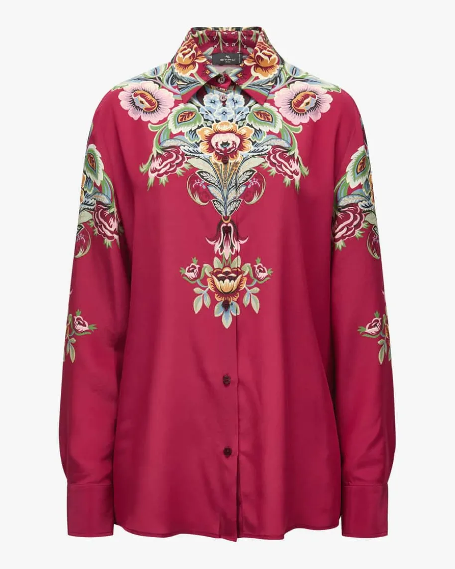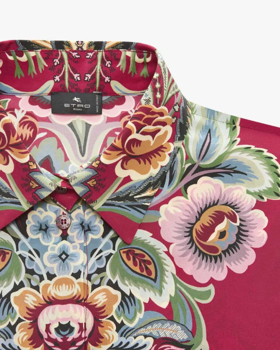 Seidenbluse für Damen von Etro in Dunkelrot und Bunt. Das Modell präsentiertsich mit hochwertiger Seiden-Qualität, die sowohl haptisch als auch optischüberzeugt. Das florale Dessin setzt zudem modische Akzente, während klassischeDetails den Look stilvoll abrunden.