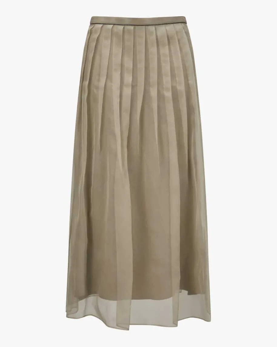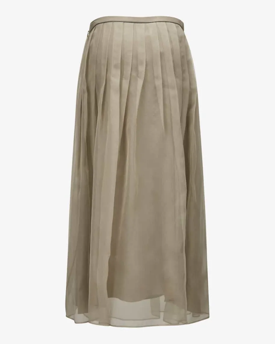 Seidenrock für Damen von Brunello Cucinelli in Beige. Das Modell überzeugt durchdie semitransparente Seiden-Optik, während die Schmuckstein-Applikationen amBund edle Akzente setzen.