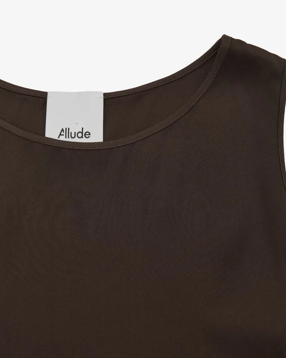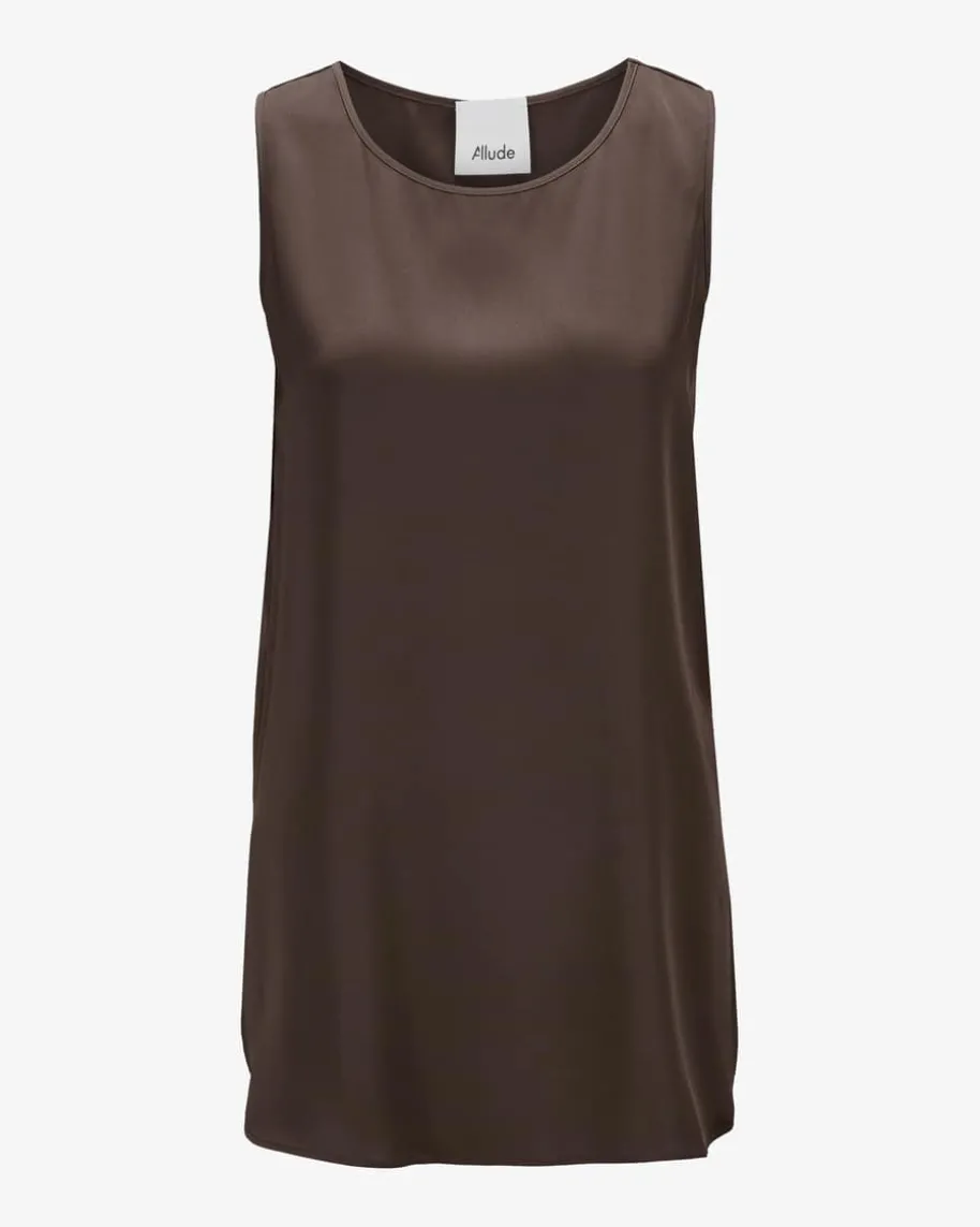 Seidentop für Damen von Allude in Chocolate. Made in Munich – Das Modell aushochwertiger Seiden-Qualität überzeugt mit angenehmen Tragemomenten, während diefließende Haptik einen femininen Begleiter für vielseitige Styles kreieren.