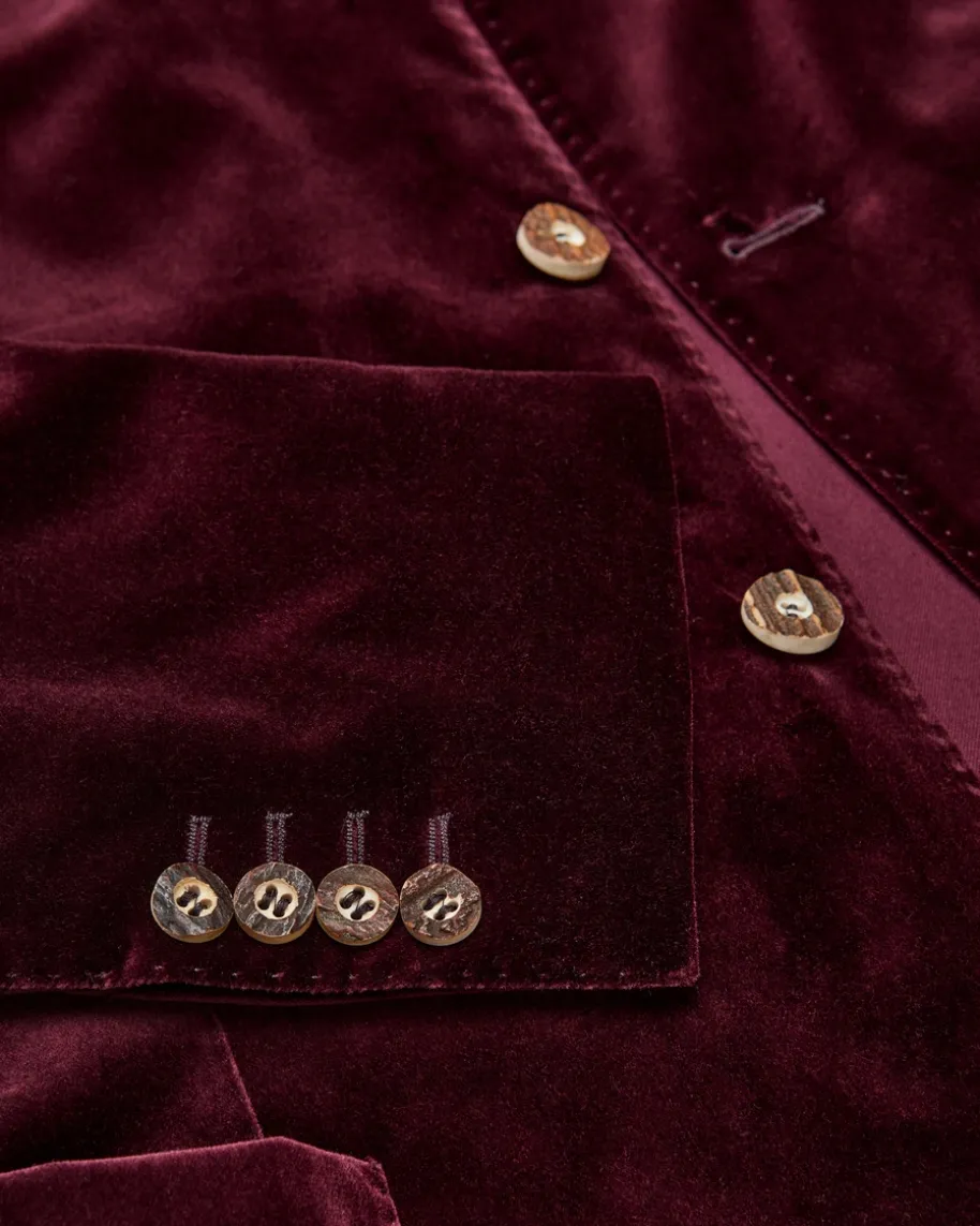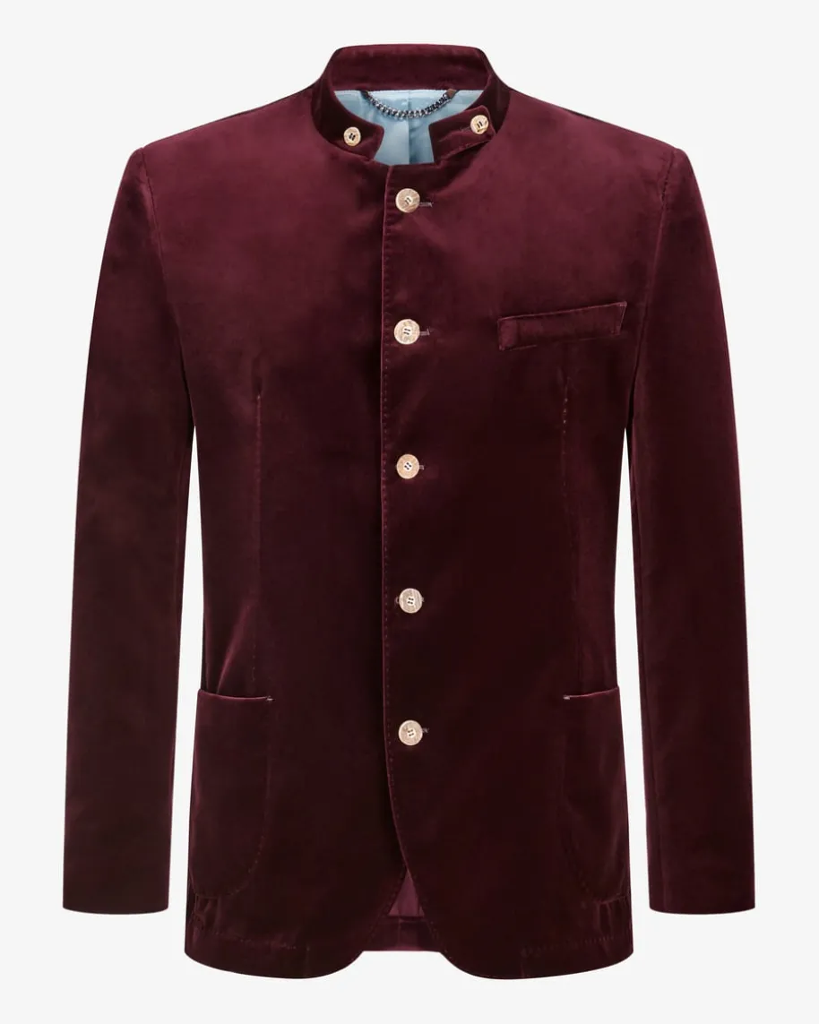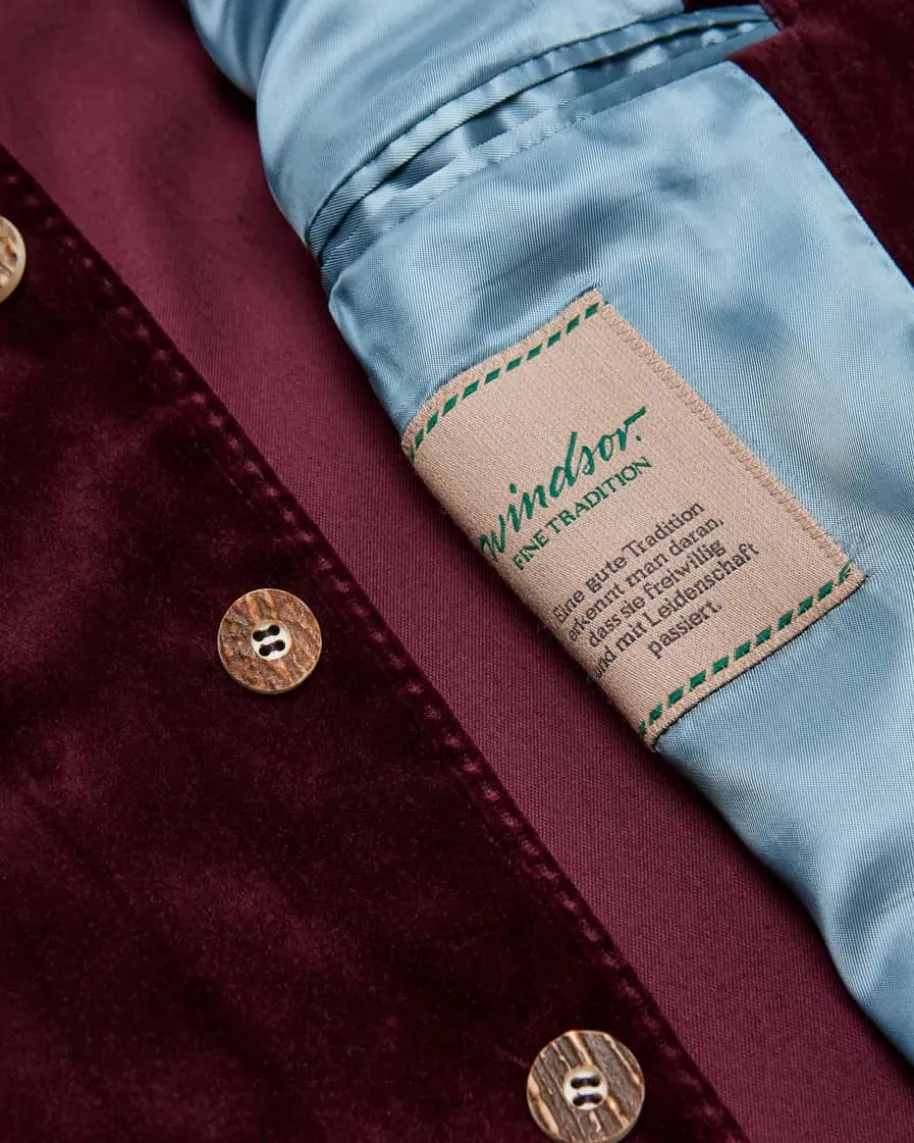Sendling Trachten-Janker für Herren von Windsor in Bordeaux. Das teilgefütterte,traditionell inspirierte Modell überzeugt durch die weiche Samt-Aufmachung sowiedie rustikalen Hornknöpfe als stilvoller Trachten-Liebling mit modernem Charme.