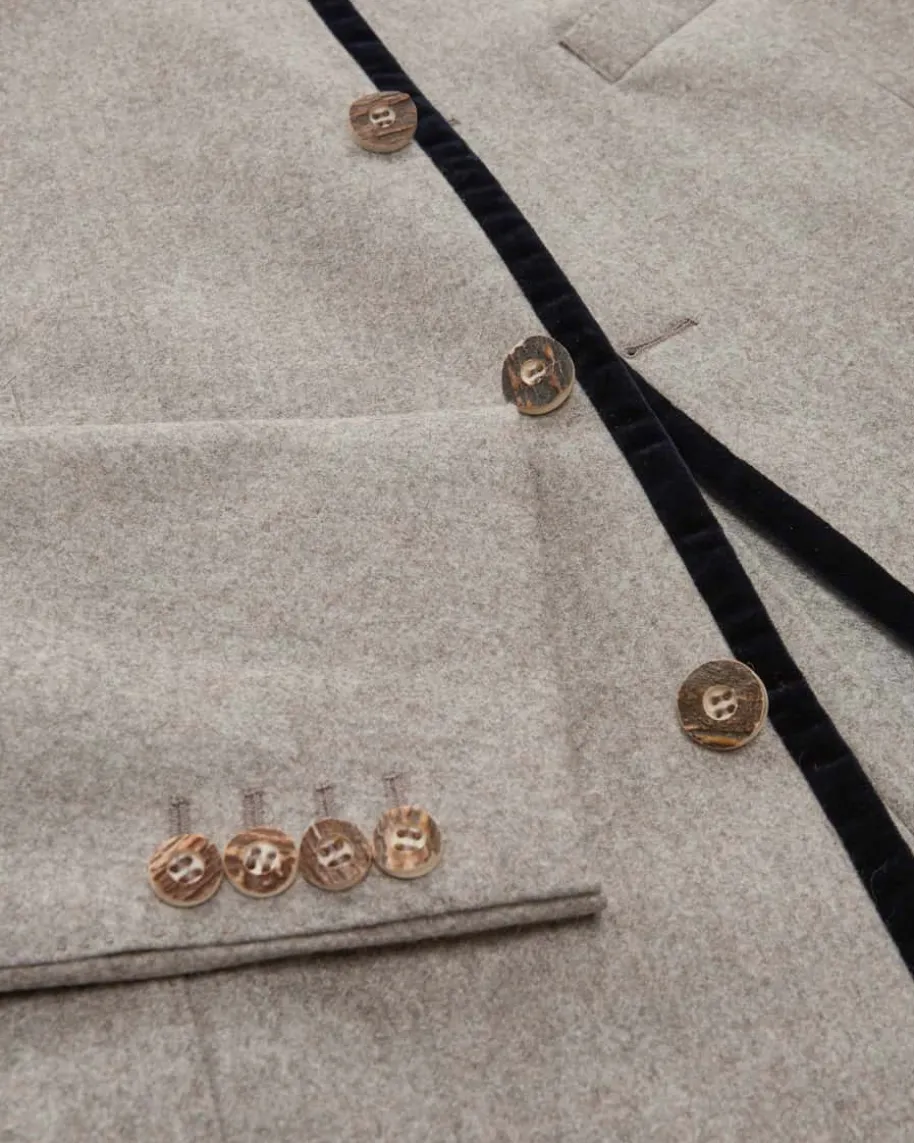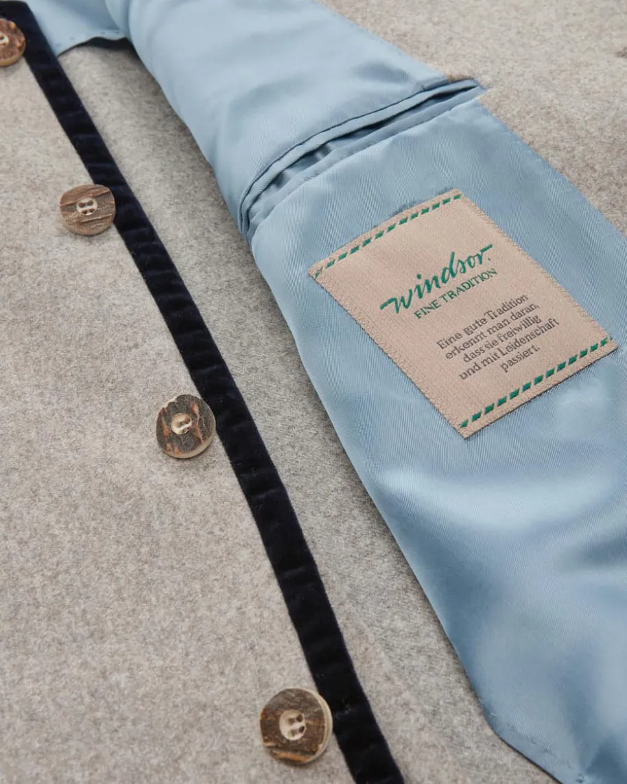Sendling Trachten-Janker für Herren von Windsor in Beige und Nachtblau. DasModellbesticht dank der hochwertigen Woll-Qualität mit einem angenehmen Griff, währendweiche Samt-Details sowie Hornknöpfe dem traditionellen Gesamtbild den letztenSchliff verleihen.