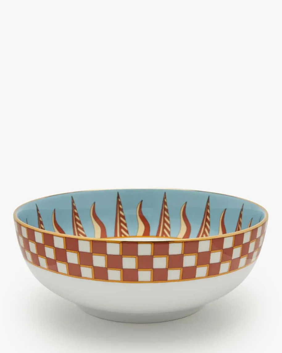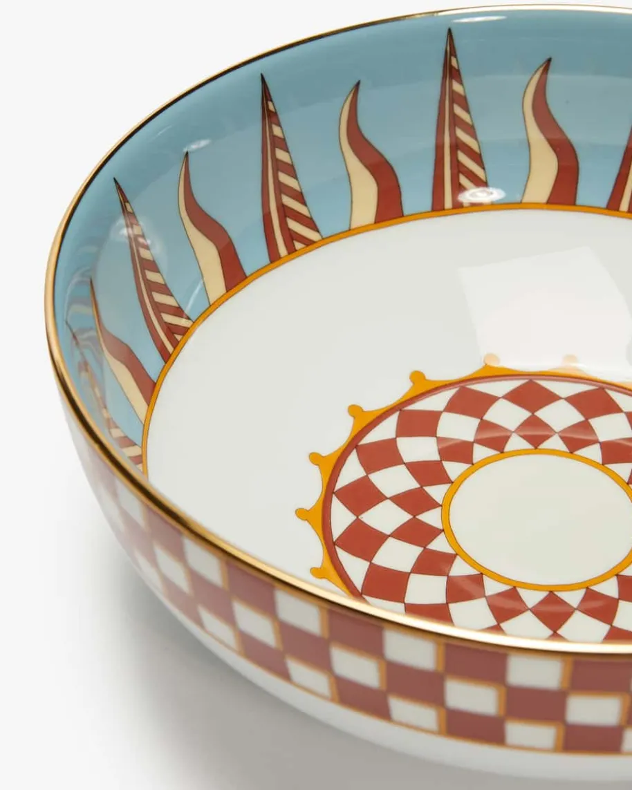 Servierschüssel von La DoubleJ in Weiß, Rot und Gelb. Aus feinstem italienischemPorzellan gefertigt, präsentiert sich das Modell dank des handgefertigten 18-karätigen Goldrands in edler Aufmachung. Durch das auffällige und gleichzeitigminimalistische Apollo-Design avanciert die vielseitige Schale zum Tisch-Liebling, egal ob für Salat, Pasta oder Früchte.