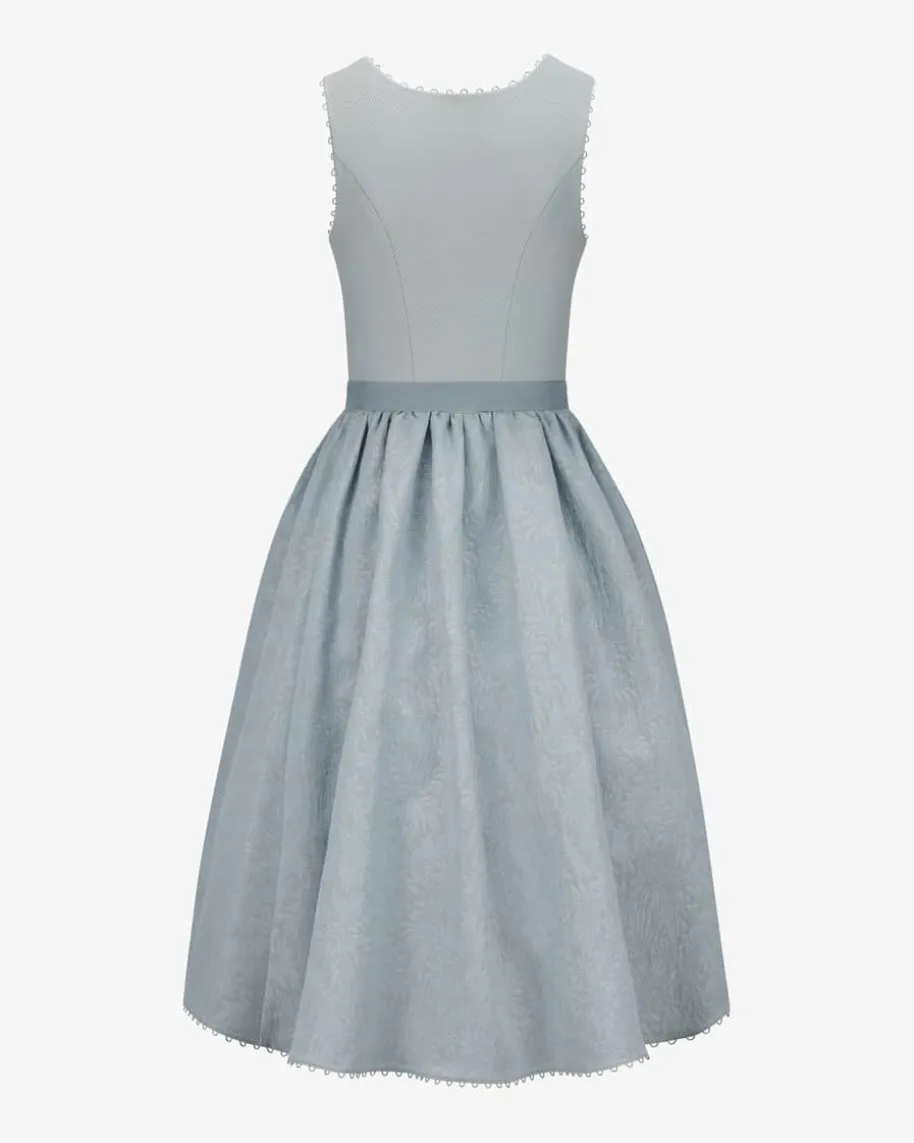Sezann Midi-Dirndl mit Schürze für Damen von Kinga Mathe in Eisblau. Mit Liebezum Detail entwirft das deutsche Label aufwendige Trachten-Kreationen mit demgewissen Etwas und überzeugt mit erlesener Stoffauswahl sowie kreative Designs.Das Modell überzeugt mit strukturiertem Mieder und feinen Zierborten, währendder Unterrock mit Volants-Saum eine feminine Passform verleiht. Die dezentchangierende Schürze aus Seiden-Mix komplettiert den Jaquard-Rock harmonisch.