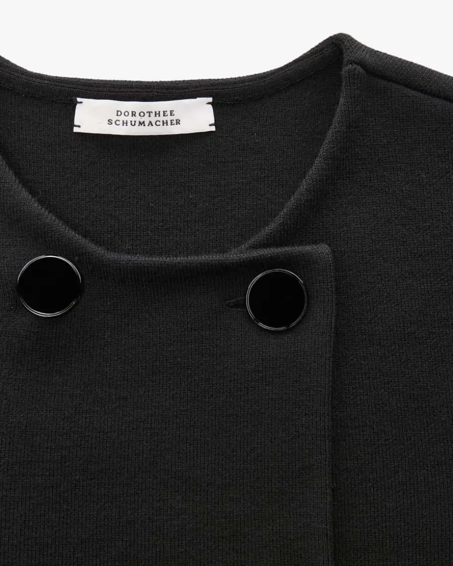 Sharp Ambition Strickjacke für Damen von Dorothee Schumacher in Schwarz.Feminine Power aus Deutschland – Dorothees Looks verbinden Stärke mitverspielter Eleganz. Auch dieses Strick-Modell präsentiert sich mit verkürzterSilhouette und markanter zweireihiger Knopfleiste, während der weiche Schurwoll-Mix angenehme Tragemomente garantiert – Ein eleganter Look mit klassischenDetails. Das Modell kann mit dem passenden Kleid getragen werden.