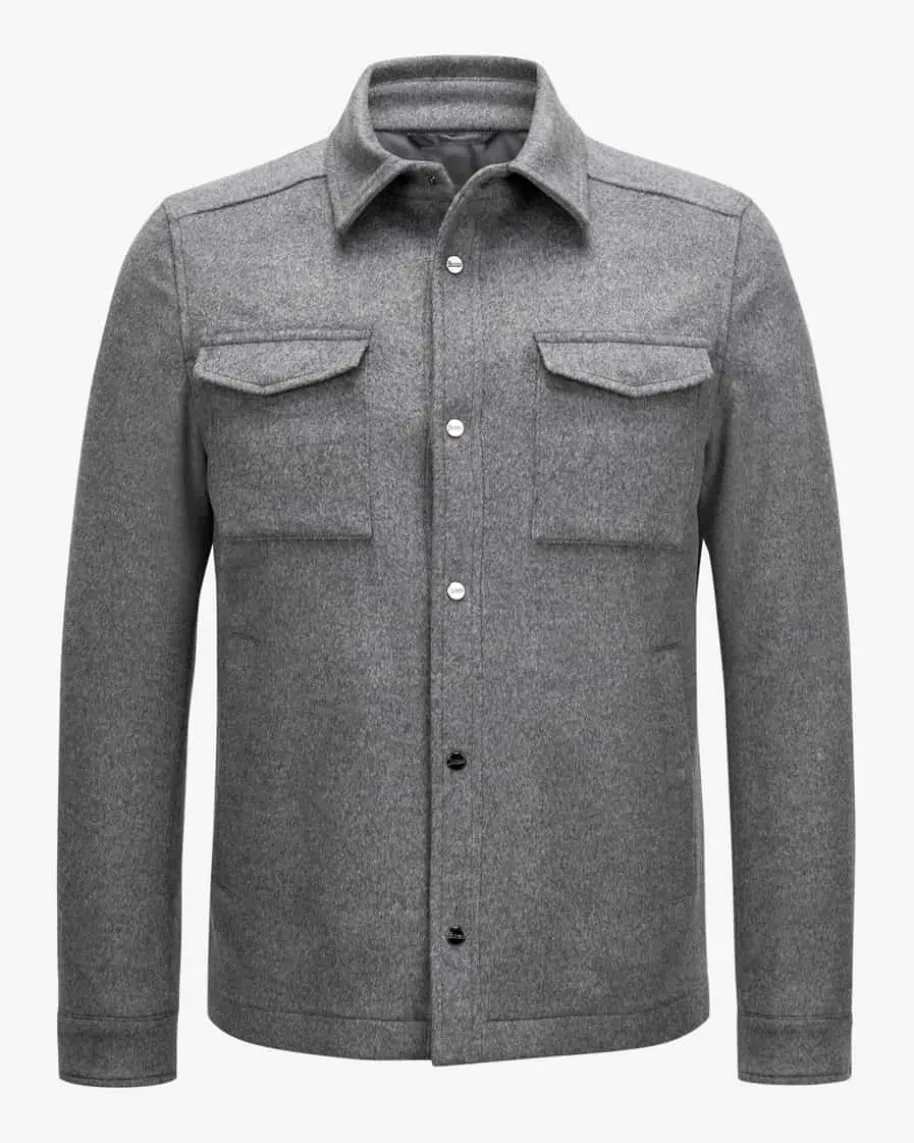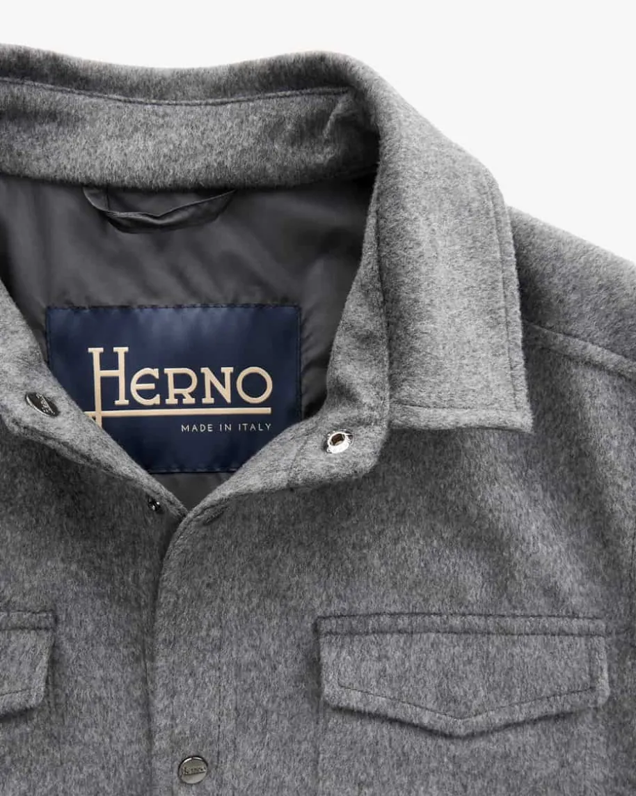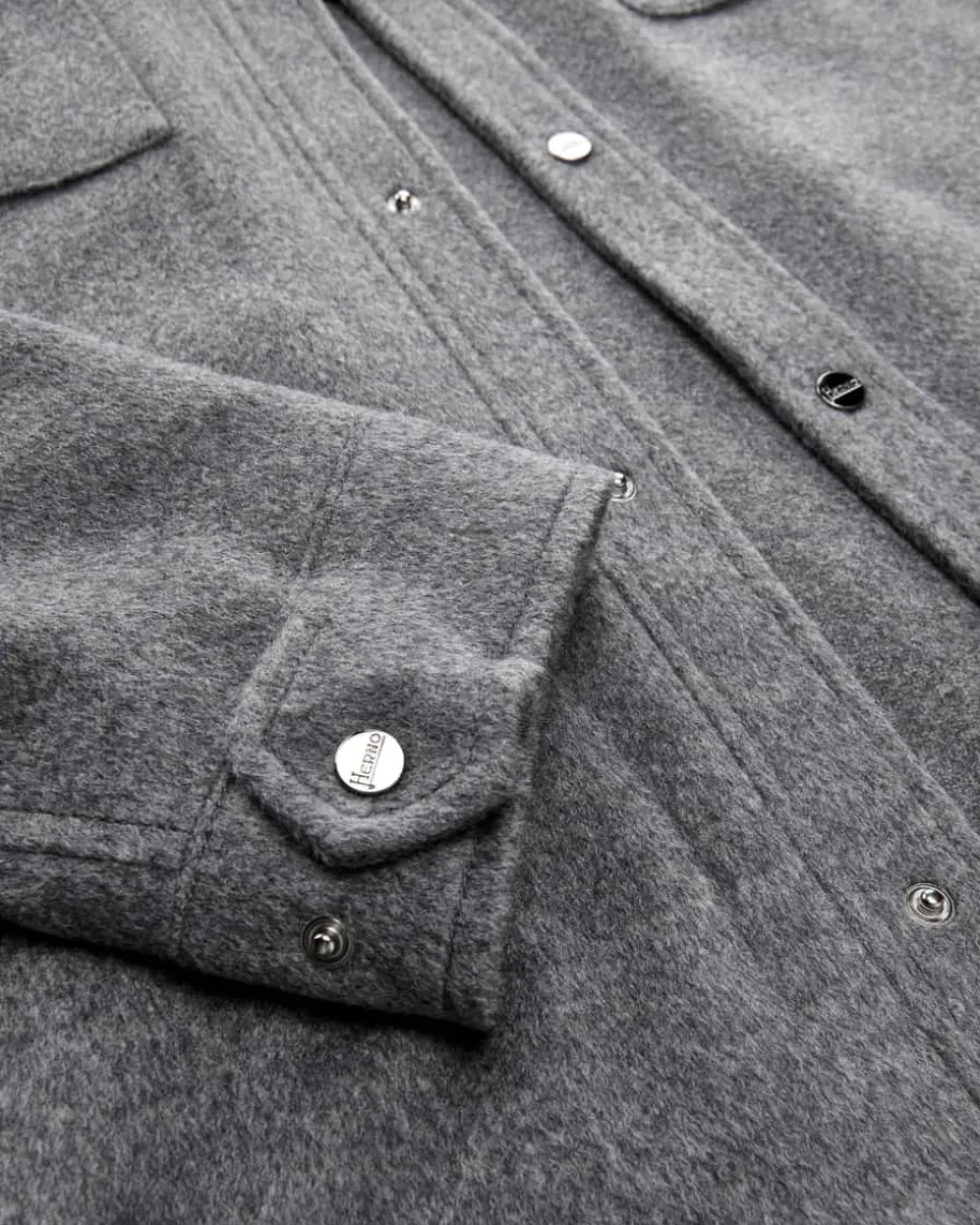 Shirtjacket für Herren von Herno in Anthrazit. Mit diesem Modell aushochwertigemSchurwoll-Cashmere-Mix präsentiert das Label einen eleganten Begleiter für kühleTage, während die Hemd-Aufmachung einen angesagten Favoriten kreiert.