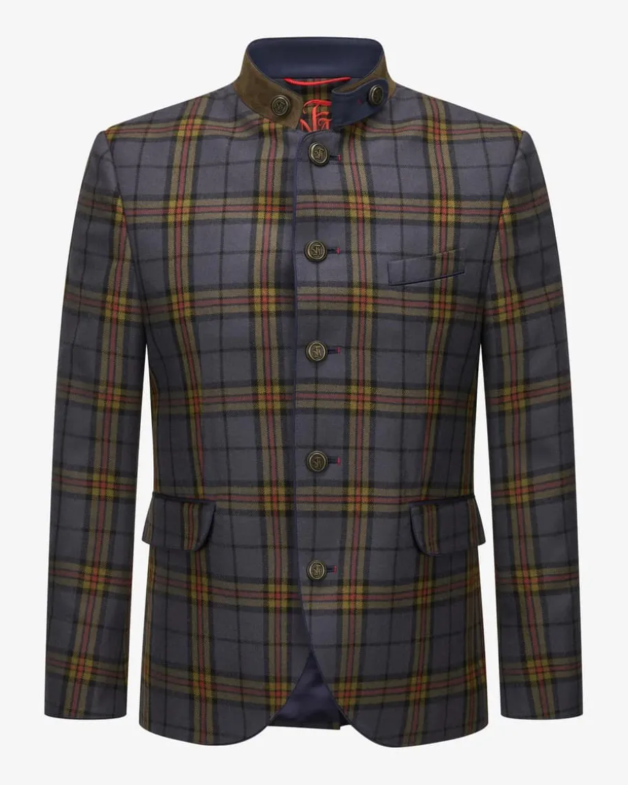 Silas Trachten-Janker für Herren von Frederic Meisner in Blau, Oliv undBordeaux. Dastraditionelle Modell überzeugt durch die Verwendung von besonders leichterQualität aus karierter Schurwolle. Edle Knöpfe mit Initialen des Labelssowie der Riegel am Stehkragen runden das Trachten-Outfit perfekt ab.