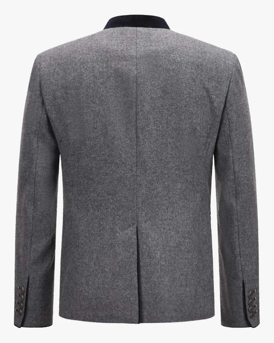 Silas Trachten-Janker aus Merino-Schurwolle für Herren von Frederic Meisner inGrau und Nachtblau. Das Modell besticht dank der hochwertigen und zugleichleichten Merino-Schurwolle in traditioneller Aufmachung. Edle Metallknöpfe mitInitialen des Labels sowie Kontrast-Paspeln aus changierendem Samt runden dasmaskuline Trachten-Outfit perfekt ab.
