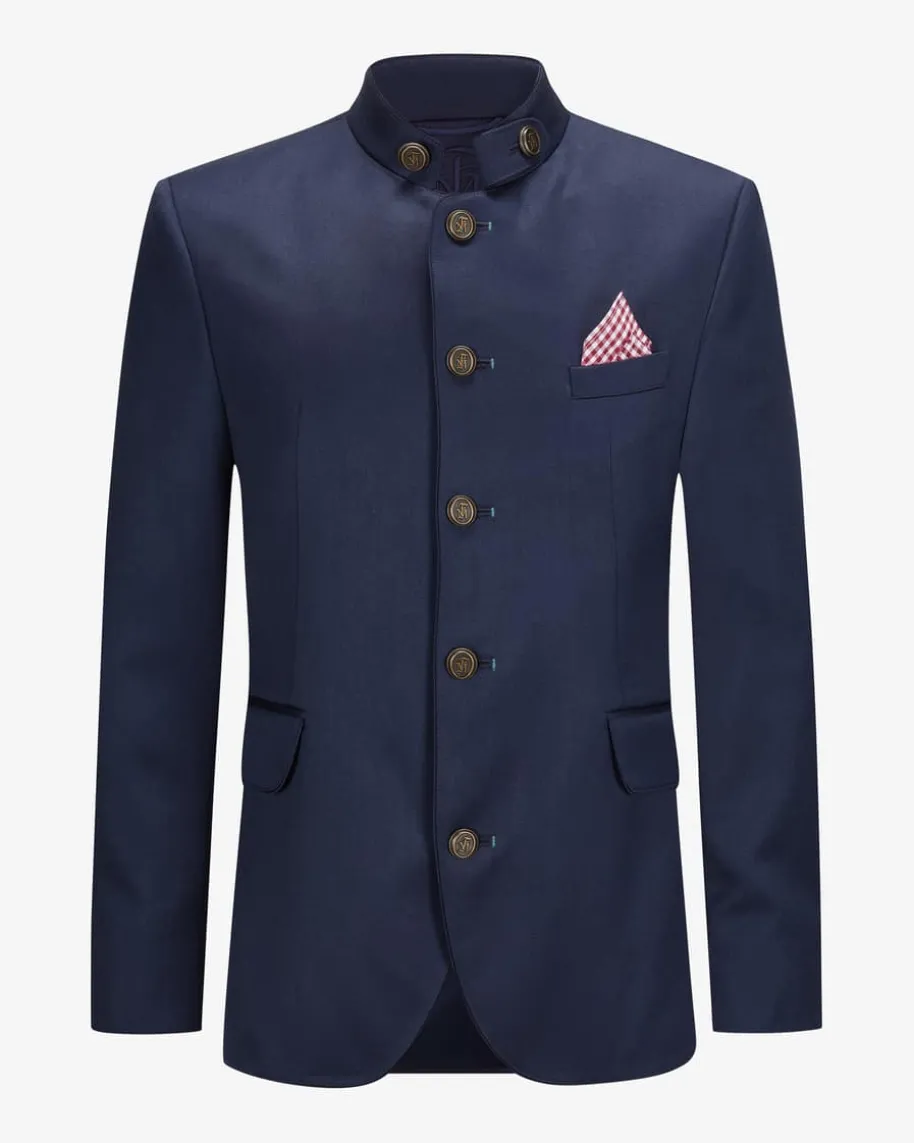 Silas Trachten-Janker für Herren von Frederic Meisner in Navy. Das traditionelleModell überzeugt durch die Verwendung von besonders leichter Loden-Qualität ausfeiner Merino-Schurwolle in klassischer Aufmachung. Die edlen Metallknöpfe mitInitialen des Labels runden das maskuline Trachten-Outfit stilvoll ab.