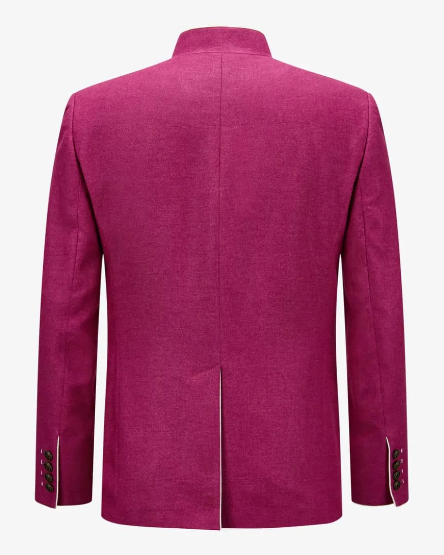 Silas Trachten-Janker für Herren von Frederic Meisner in Magenta und Creme. DasModell besticht dank der hochwertigen und zugleich leichten Schurwoll-Mixes intraditioneller Aufmachung. Edle Metallknöpfe mit Initialen des Labels sowieKontrast-Paspeln runden das maskuline Trachten-Outfit perfekt ab.