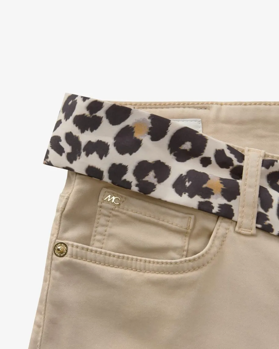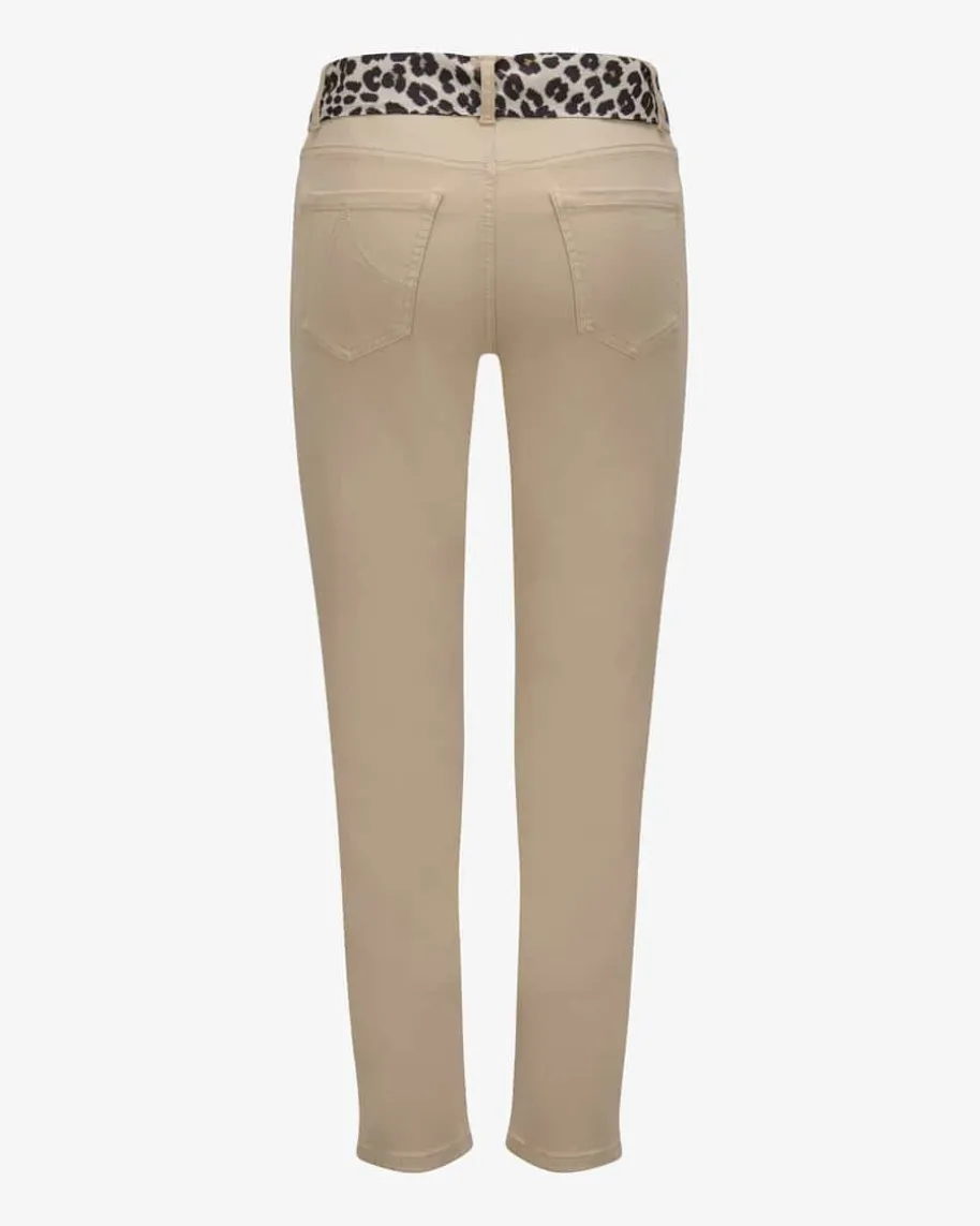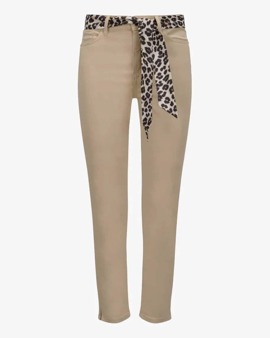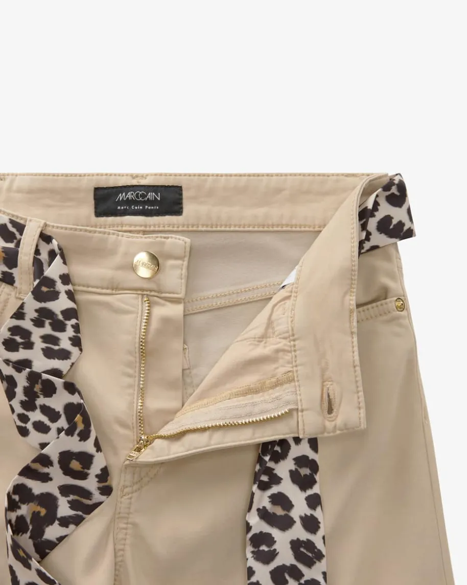 Silea 7/8-Hose Regular Waist Slim Fit für Damen von Marc Cain in Camel. DasModell avanciert dank der schmalen Schnittführung sowie dem abnehmbaren Band mitLeoparden-Print zum femininen Blickfang, welcher durch den elastischen Tencel-Mix mit besonders softer Haptik und hohem Tragekomfort punktet.