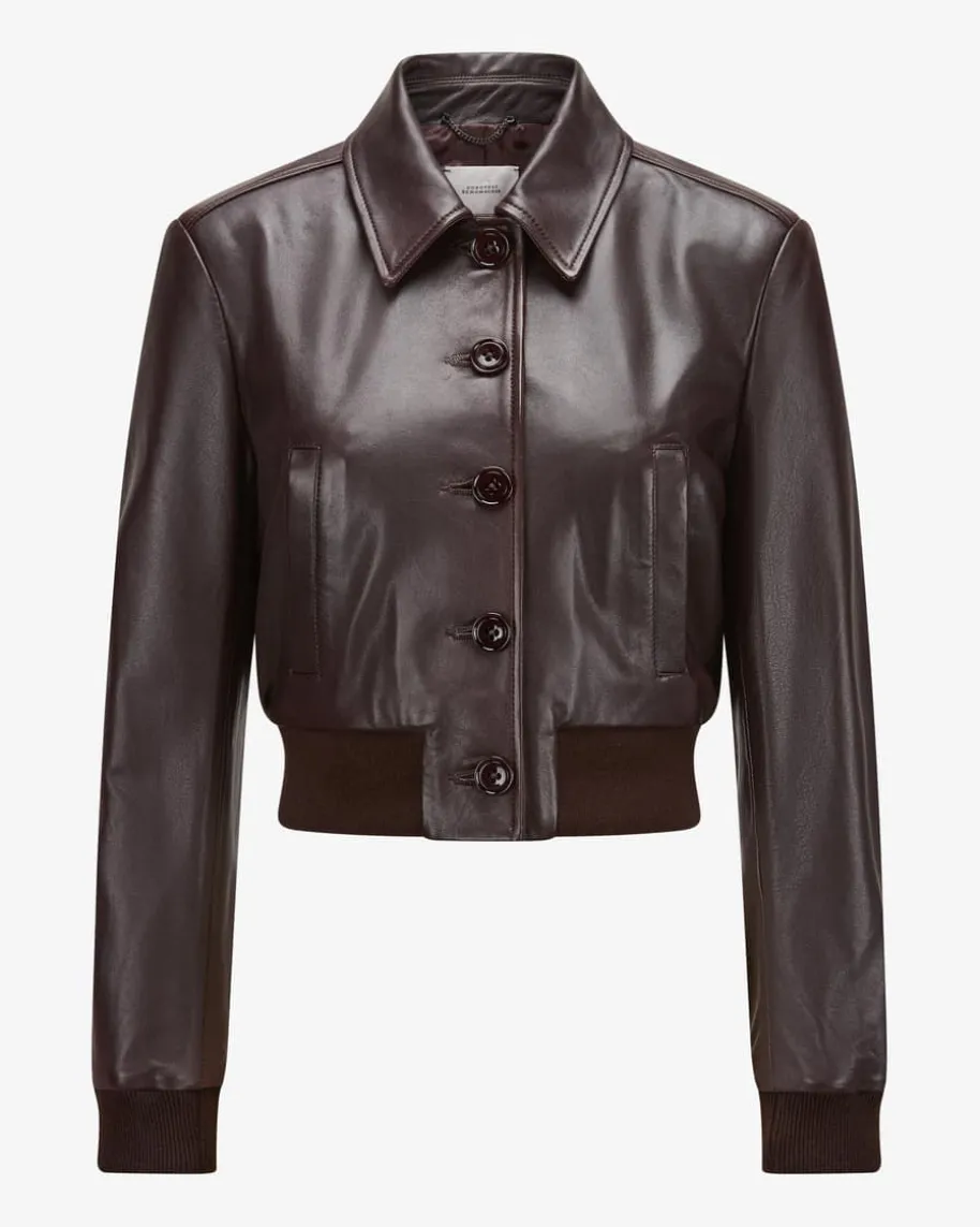 Sleek Statement Lederjacke für Damen von Dorothee Schumacher in Schoko. Dasschmale Modell besticht dank der hochwertigen Leder-Aufmachung als stilsichererFavorit, während Rippstrick-Details an Saum und Bündchen den perfekten Sitzgarantieren.