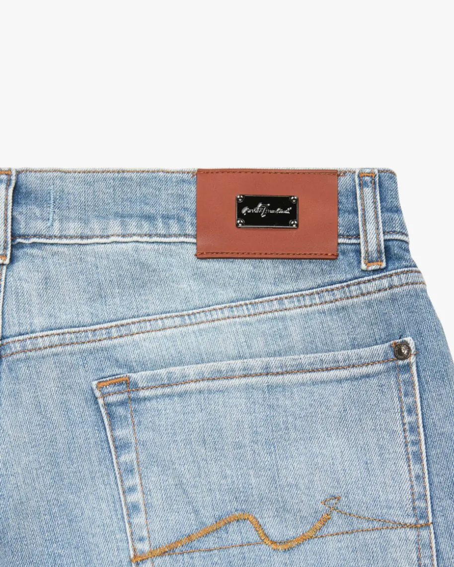 Slimmy Jeans für Herren von 7 For All Mankind in Hellblau. Das Modellpräsentiert sich mit klassischem Slim Fit sowie zeitlosen Details und überzeugtdank angenehm elastischem Baumwoll-Mix in gleichmäßiger Waschung als perfekteJeans für Casual Looks.