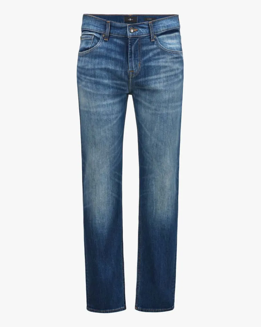 Slimmy Jeans für Herren von 7 For All Mankind in Blau. Das Modellpräsentiert sich mit klassischem Slim Fit sowie zeitlosen Details und überzeugtdank angenehm elastischem Baumwoll-Mix in gleichmäßiger Waschung als perfekteJeans für Casual Looks.