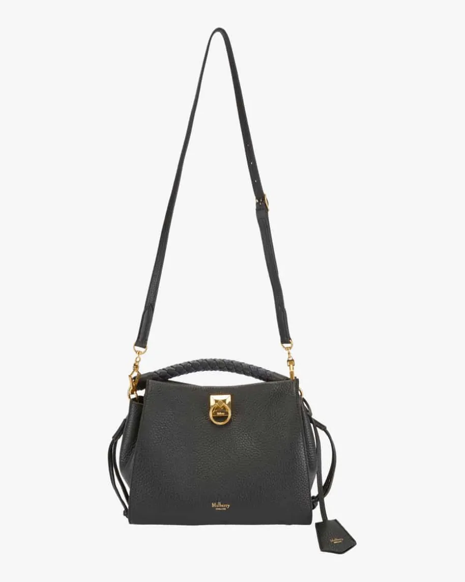Small Iris Henkeltasche für Damen von Mulberry in Schwarz. Das Modell aushochwertig genarbter Leder-Qualität avanciert dank luxuriöser Aufmachung zumstilvollen Accessoire für modische Looks. Goldene Details sowie der raffinierteHenkel in Flecht-Optik komplettieren das edle Gesamtbild gekonnt.