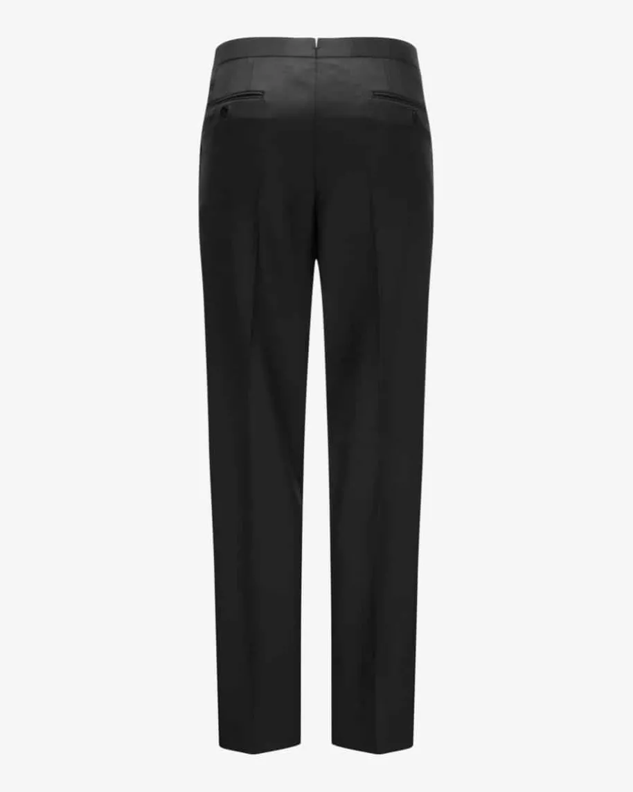 Smoking für Herren von Brioni in Schwarz. Das edle Modell besticht durchzahlreiche Seiden-Details, während klassische Elemente wie Galon-Streifen sowiedie angenehme Woll-Qualität einen stilsicheren Begleiter für maskuline Auftritte kreieren.
