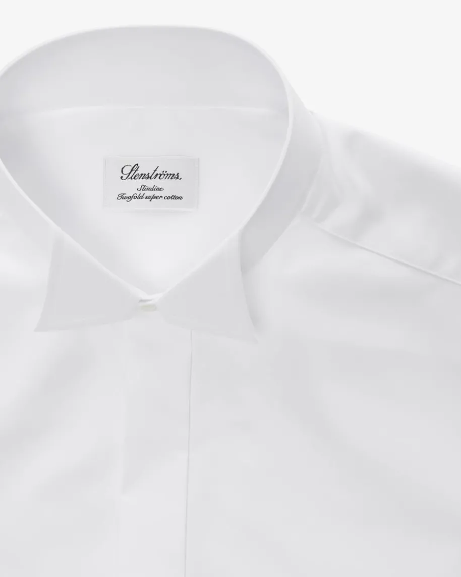Smokinghemd Slimline Kläppchenkragen für Herren vonStenströms in Weiß. Das taillierte Hemd aus hochwertigerTwofold-Baumwolle ist mitUmschlagManschetten sowie einem Kläppchenkragen versehen. Einunverzichtbarer Begleiterzu gehobenen Anlässen.