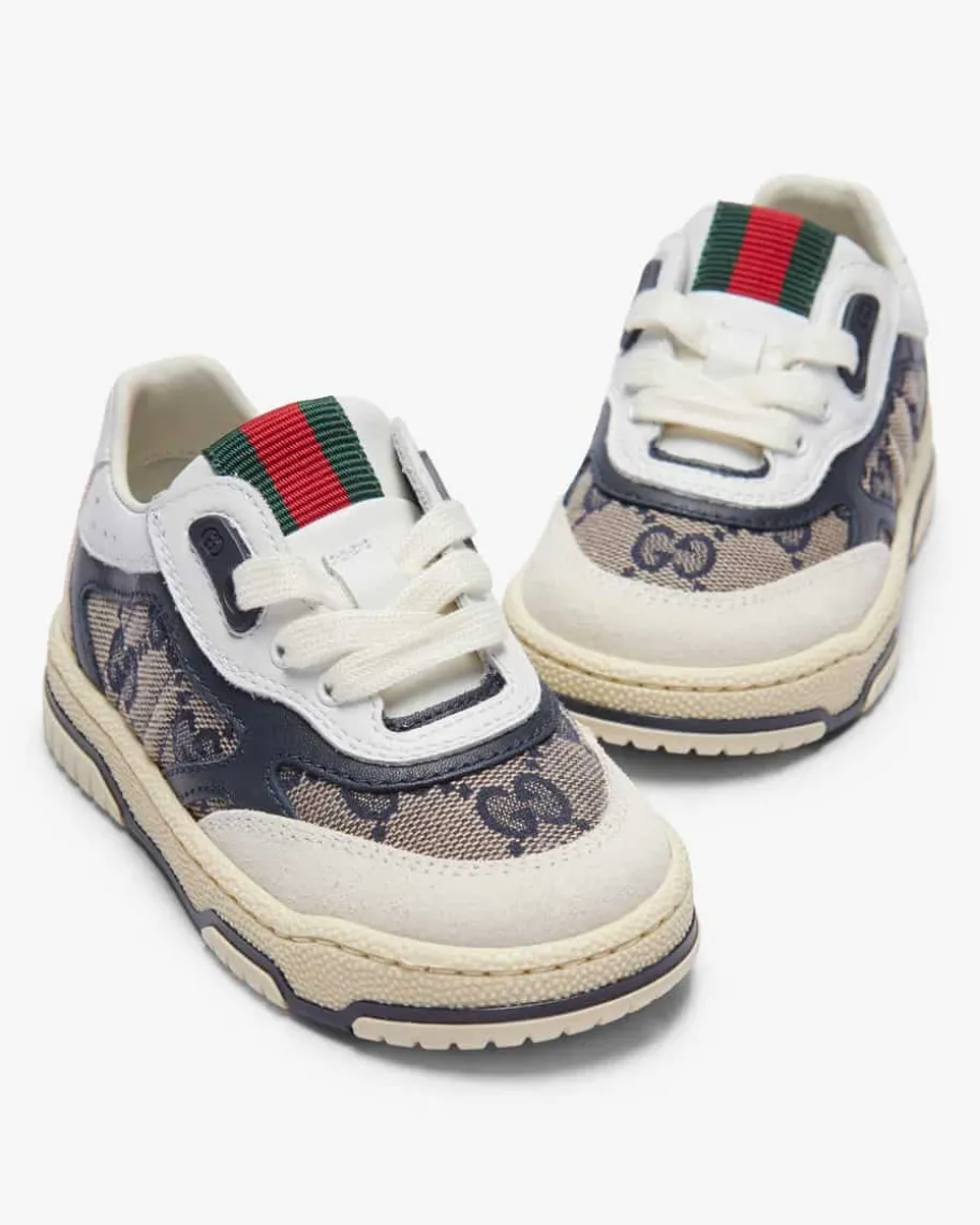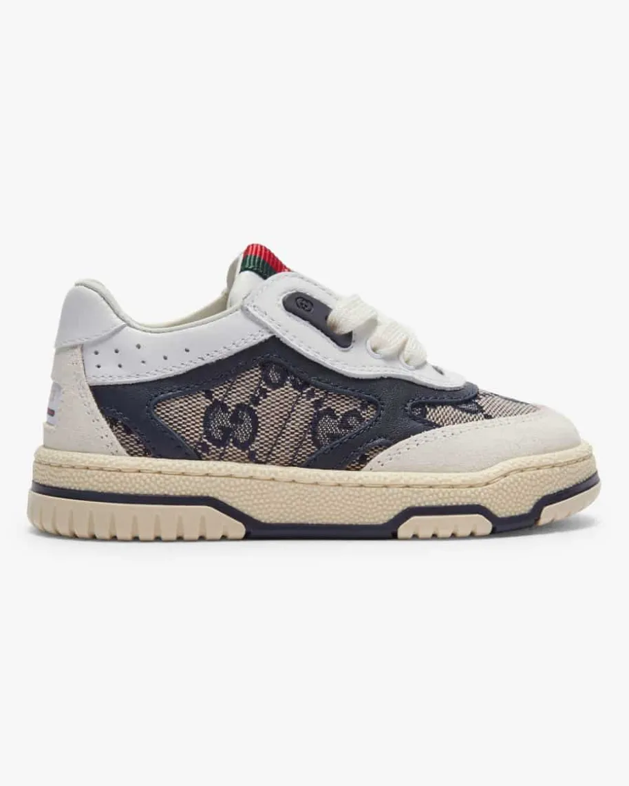 Sneaker für Kinder von Gucci Kids in Navy und Weiß. Das Modell besticht dank derKombination aus Velours- und Glattleder in niedlicher Aufmachung, währendlabeltypische Logo-Details dem Gesamtbild einen süßen Charme verleihen.