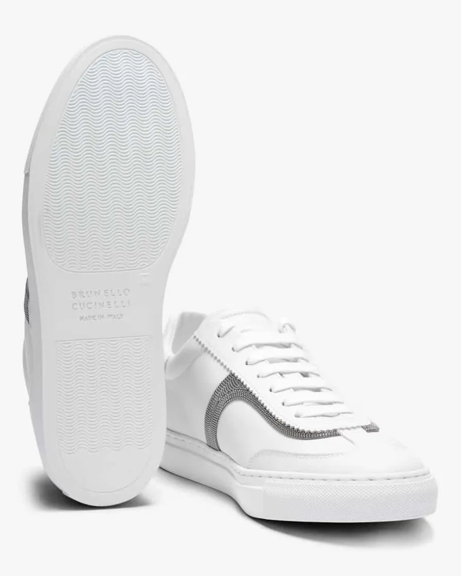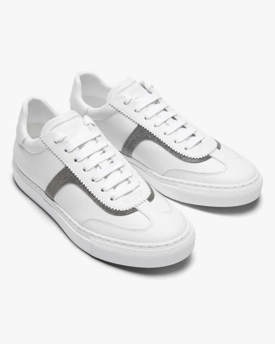 Sneaker für Damen von Brunello Cucinelli in Weiß. Gefertigt aus hochwertigemGlattleder besticht das Modell als modischer Favorit, während die Kombinationaus sportivem Design und changierenden Schmuckketten ein harmonisches Gesamtbildkreieren.