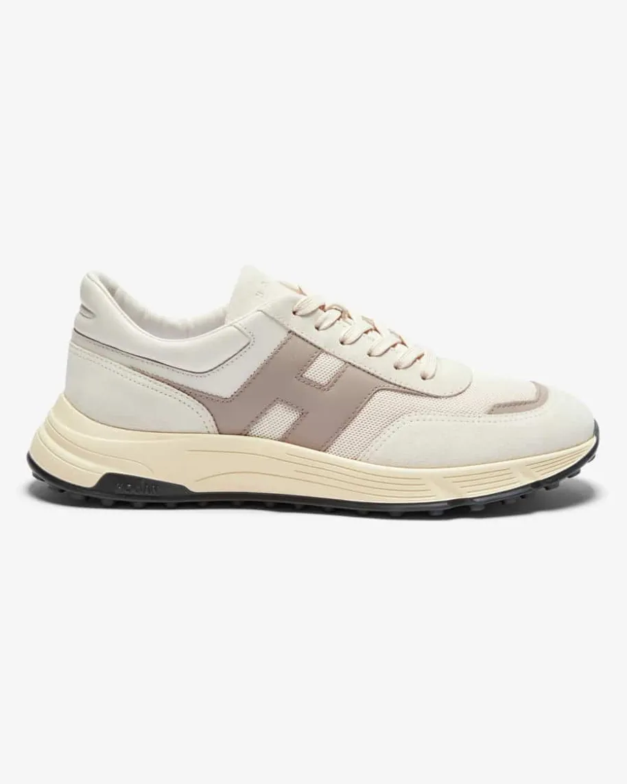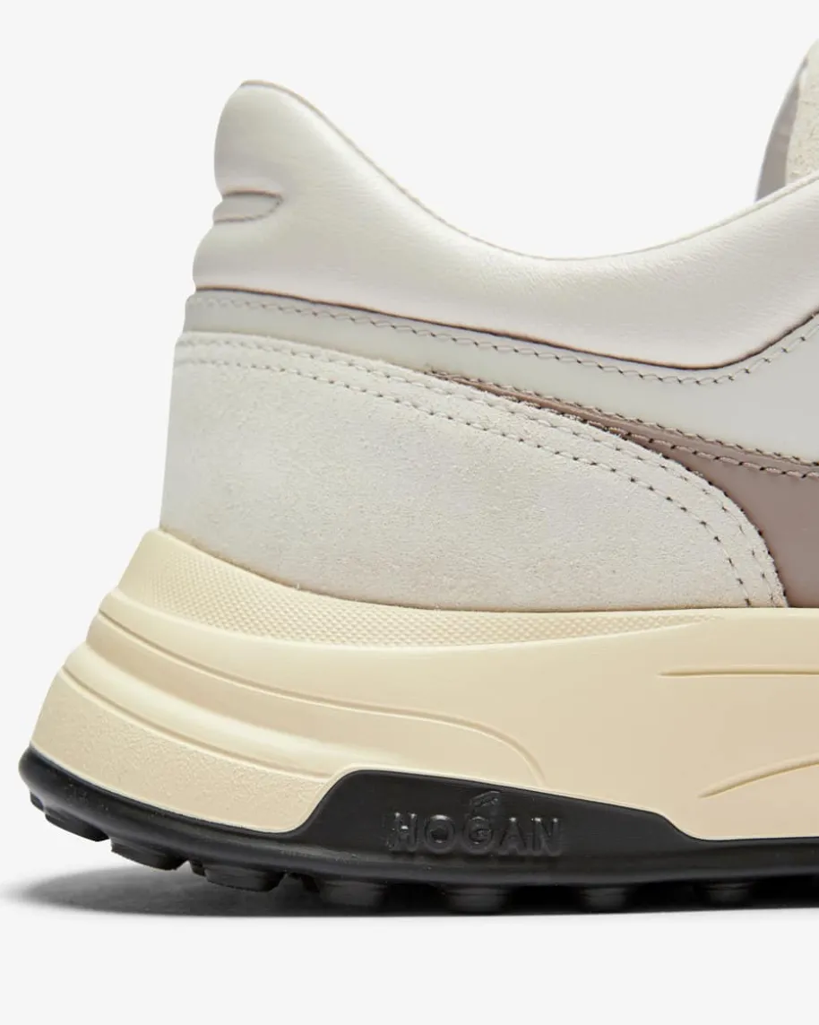 Sneaker für Herren von Hogan in Hellgrau und Ecru. Das Modell in sportiverAufmachung avanciert dank der Kombination aus hochwertigem Leder und Textil zumoptischen Blickfang. Zugleich sorgt die weich gepolsterte Memory Foam-Innensohlefür besonders hohen Tragekomfort.
