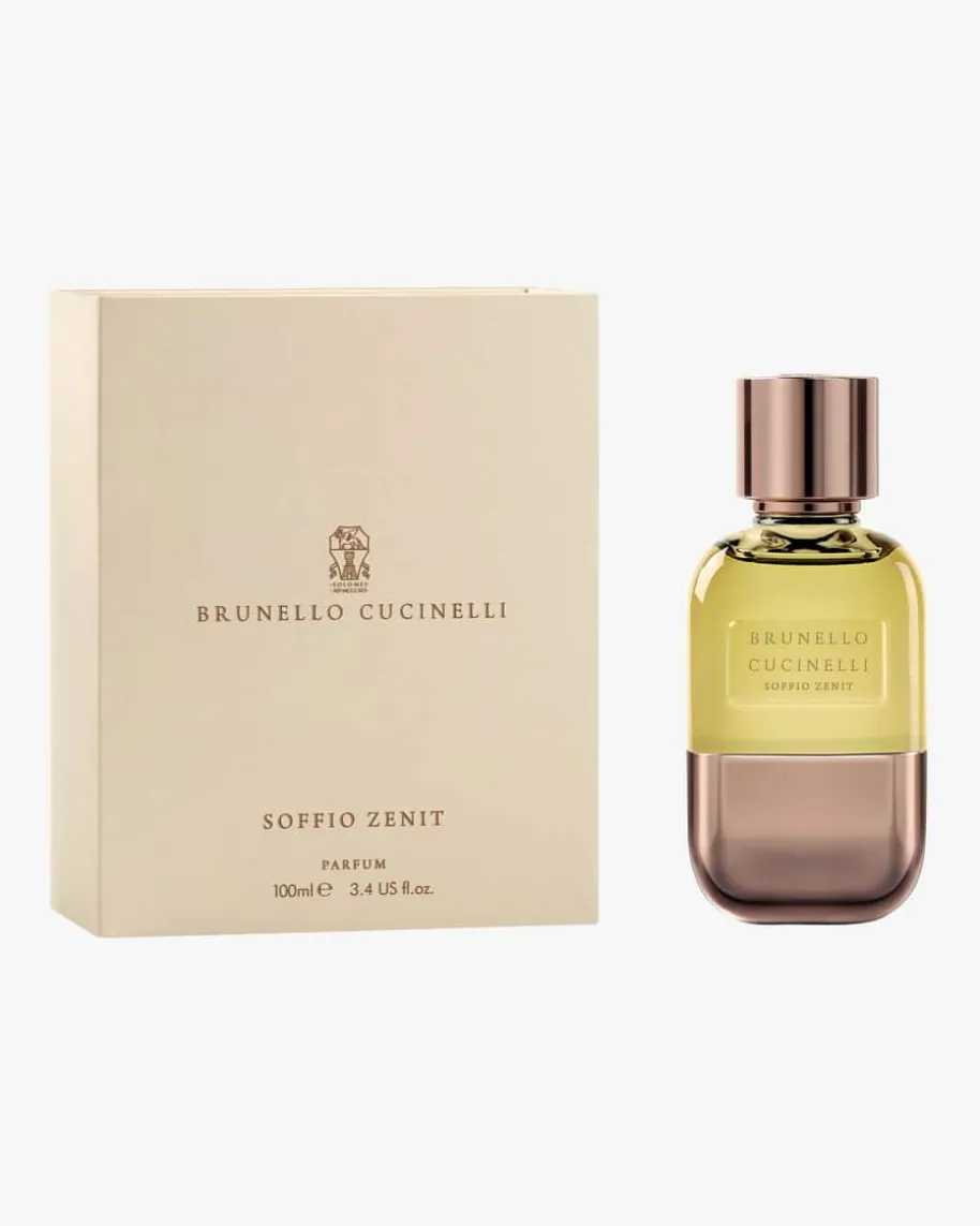 Soffio Zenit Eau de Parfum 100ml für Damen von BrunelloCucinelli. ZeitloseEleganz und erlesene Schönheit – Dieses Parfum findet seineInspiration in demGedicht „Un desiderio“ von Giannina Milli. Lavendel undRosmarin verschmelzen ineinem frischen und einhüllenden Bouquet, in dem sich diewarme, harzige Süße desLabdanum Absolue entwickeln und dem olfaktorischen ErlebnisKörper und Kraftgeben kann. Eine Hommage an die Geschenke der Erde, bewahrtin einer Kreationvon unvergänglicher Eleganz.