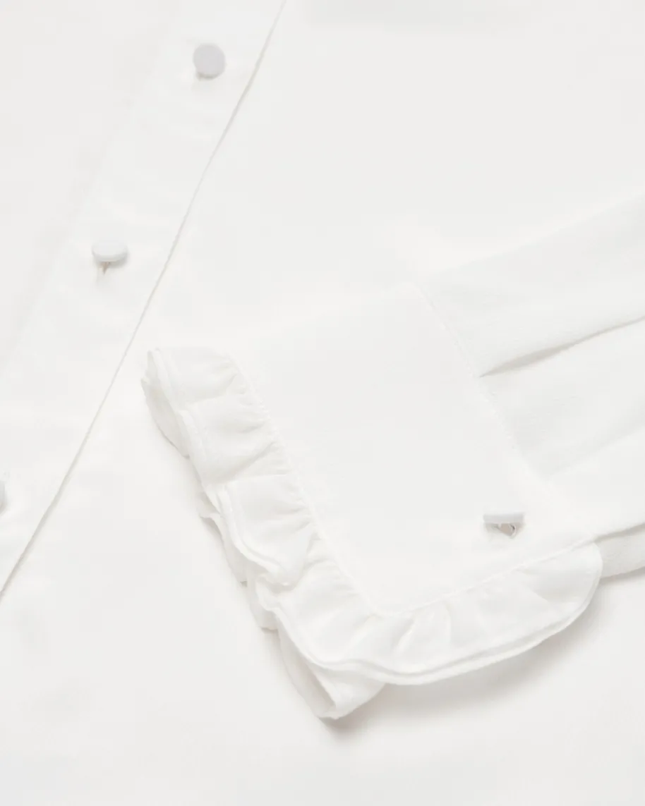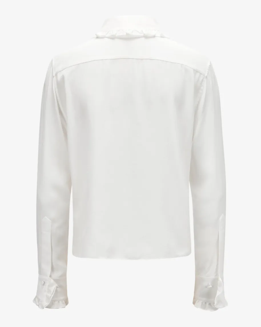 Soft Vibes Hemdbluse für Damen von Dorothee Schumacher in Weiß. Das Modellbesticht dank der hochwertigen Material-Qualität mit einem angenehmenTragegefühl, während die klassische Aufmachung dank modischer Rüschen-Detailsgekonnt abgerundet wird.